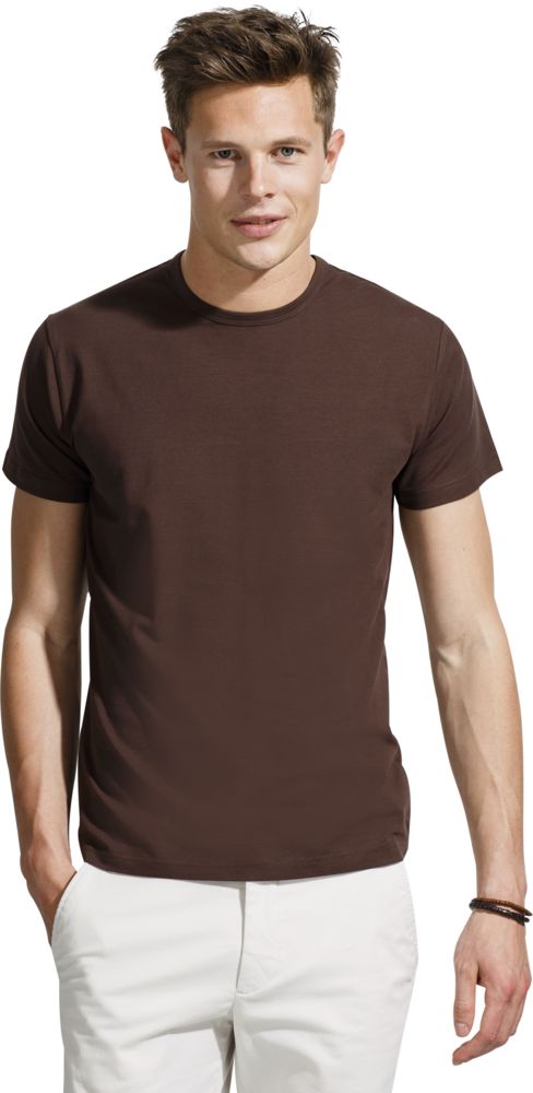 Кроенная мужская футболка стретч прямого силуэта подходит для повседневной носки.