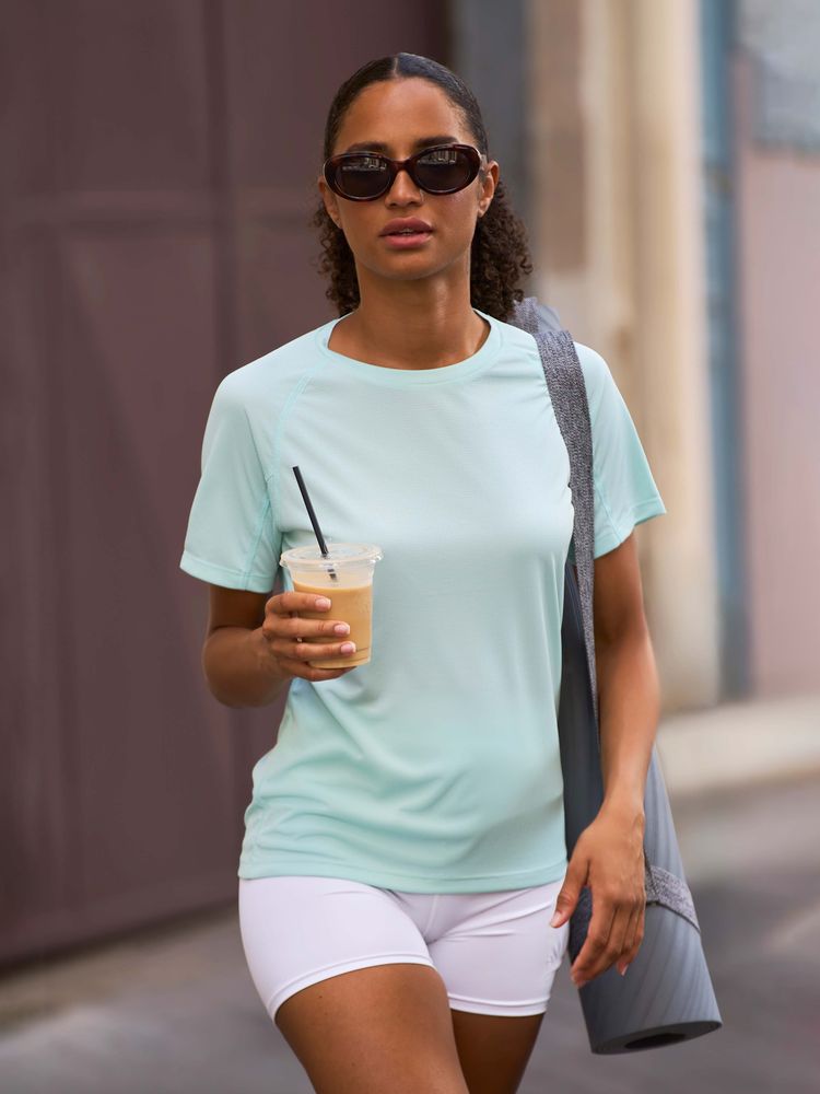 Женская спортивная футболка из дышащего и быстросохнущего материала.