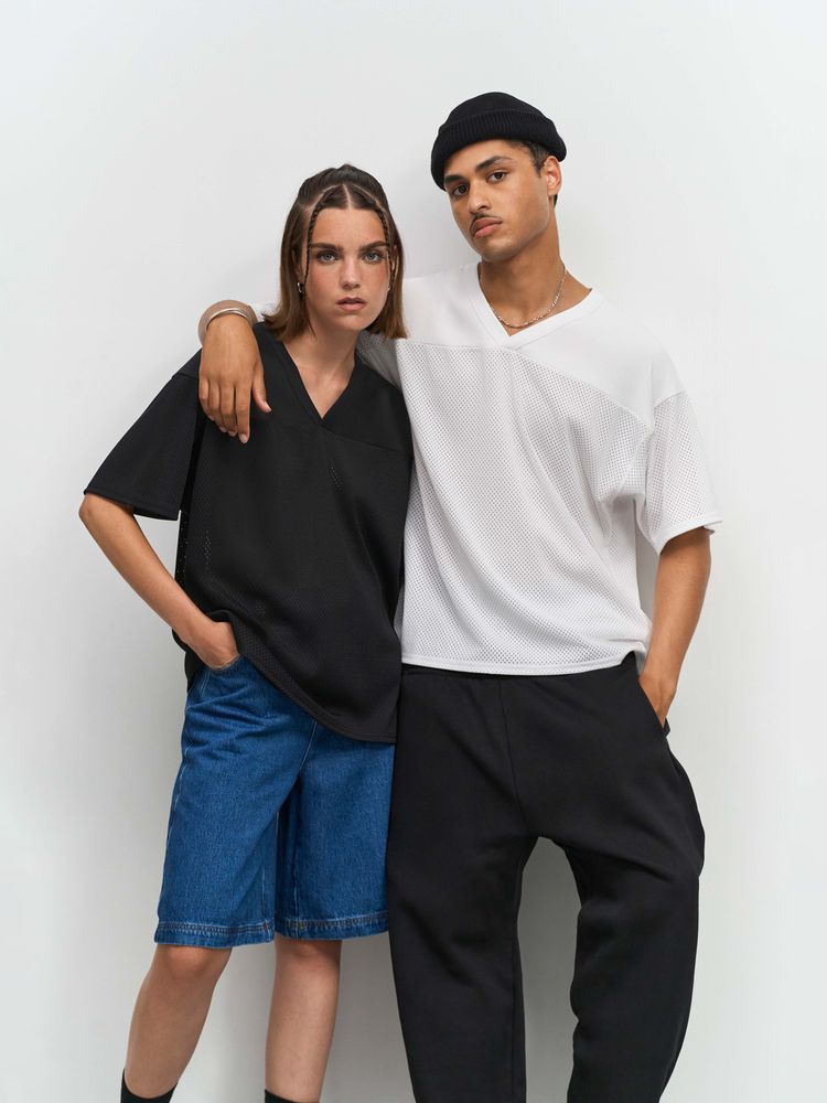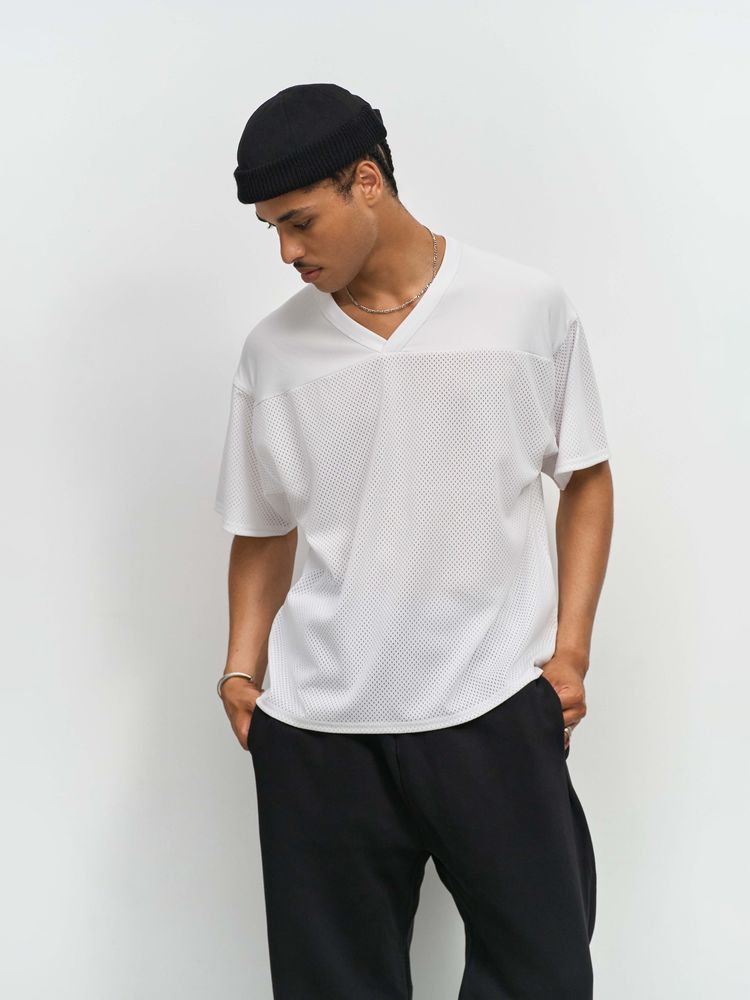 Современная оверсайз футболка, выполненная из спортивной сетки с крупной перфорацией. Благодаря оригинальному дизайнерскому крою станет прекрасным вариантом для уникального мерча.