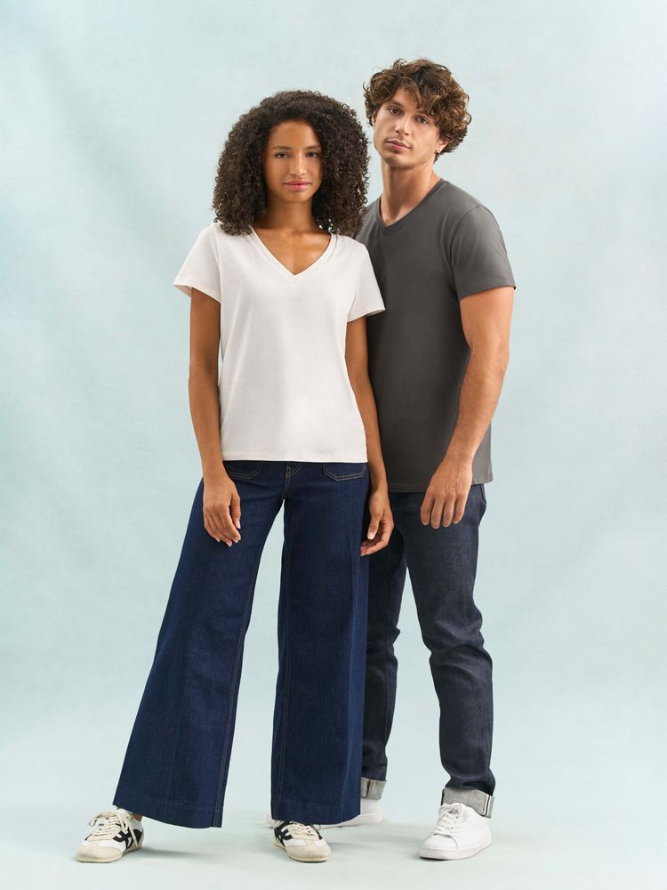 Женская футболка Regent с V-образным вырезом. Такой вырез снова актуален: он визуально удлиняет шею, подчеркивает линию ключиц и добавляет образу легкости.
