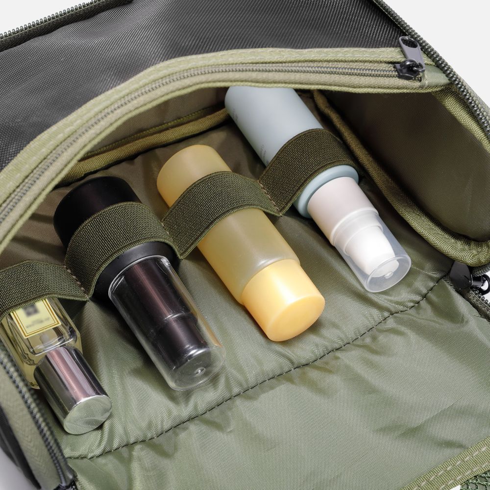 - Эластичные держатели для хранения туалетных принадлежностей и организации пространства в основном отделении