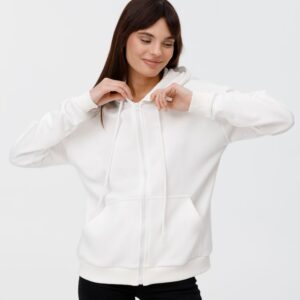 Толстовка на молнии с капюшоном женская BNC Organic, молочно-белая
