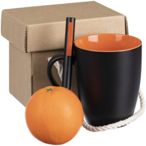 Набор Color Block: кружка и ручка, оранжевый с черным