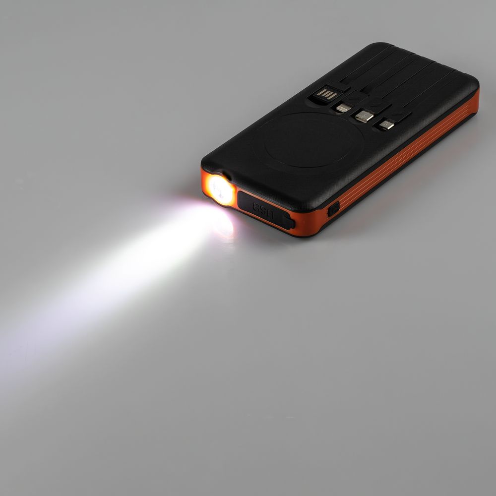 Holiday Maker — outdoor-аккумулятор с ударопрочным корпусом и защитой от пыли и брызг, который не страшно взять в поход. С ним удобно заряжать разные типы устройств благодаря 3 встроенным кабелям с разъемами micro USB, Type-C и Lightning. С солнечной батареей получится не остаться совсем без связи. Яркий фонарик осветит путь или послужит сигнальным маячком.