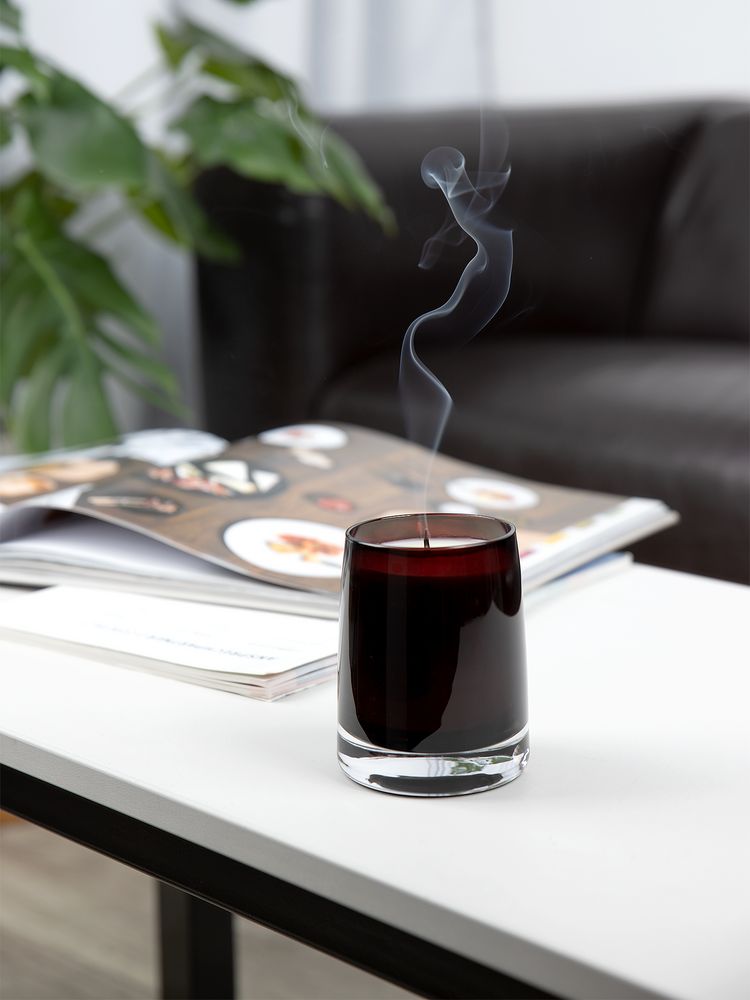 Ароматическая свеча Fragnola в изящном подсвечнике из цветного стекла идеально подходит для создания уютной атмосферы в доме и станет отличным дополнением к любому интерьеру.