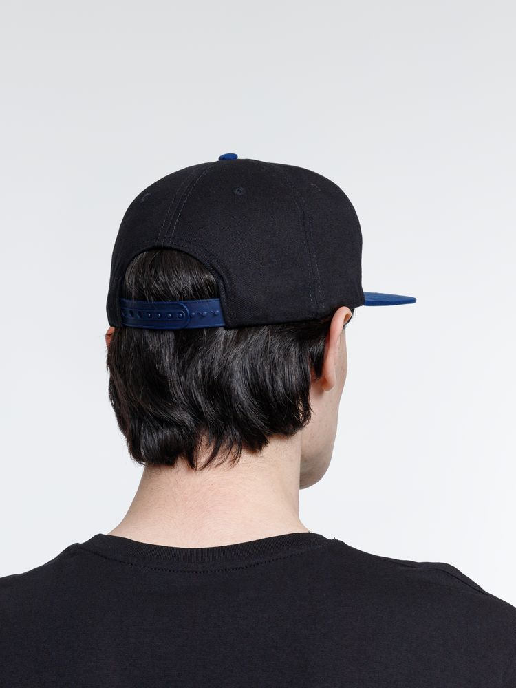- Плотный контрастный прямой козырек из мягкой, приятной на ощупь ткани с велюровым эффектом