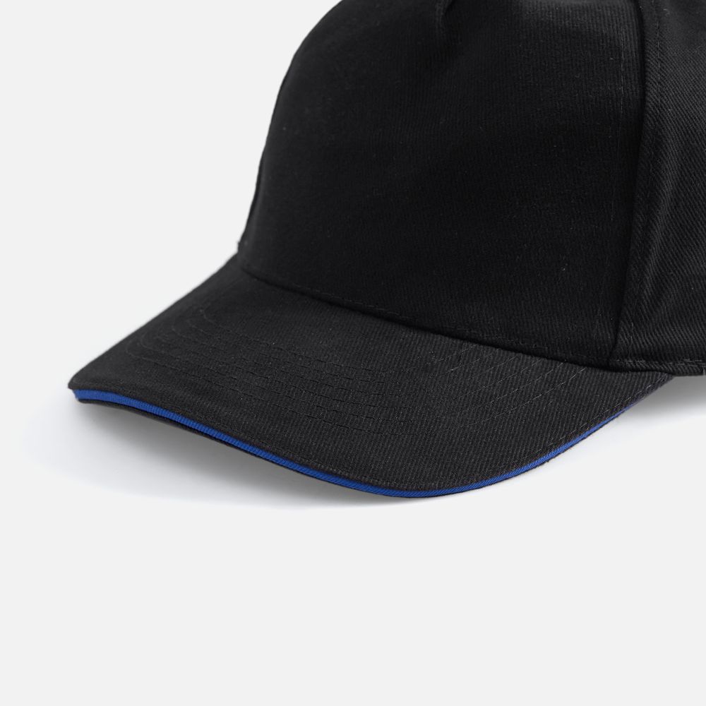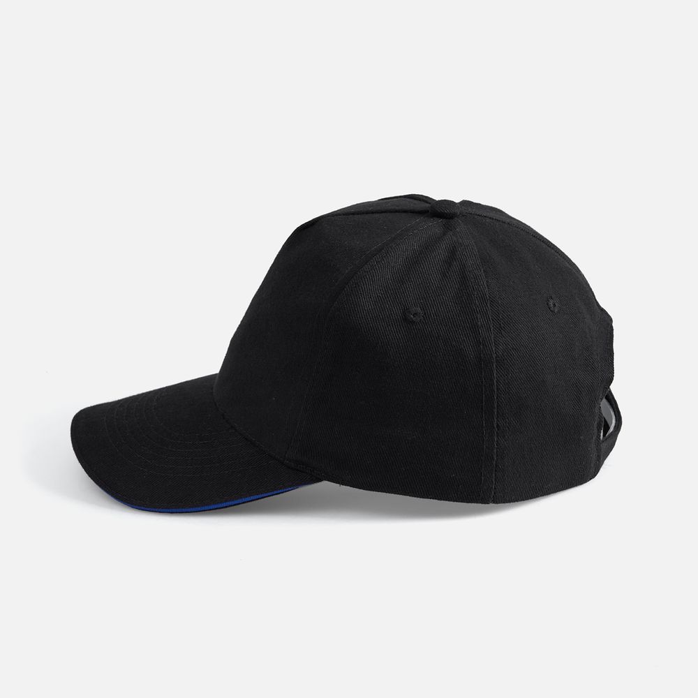 Модель бейсболки с 5-ю клиньями без лобового шва из плотного чесаного хлопка.