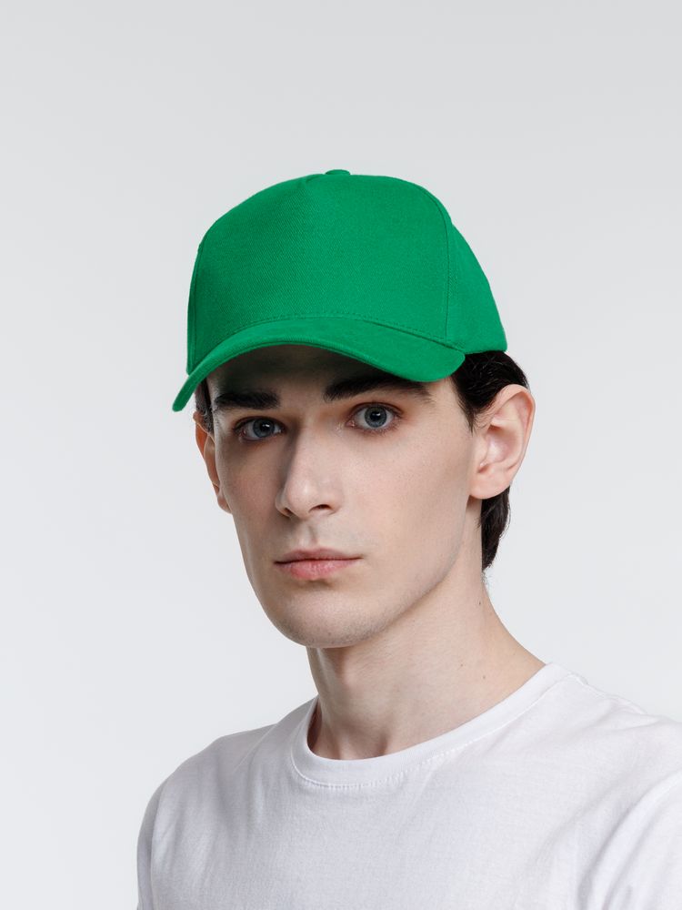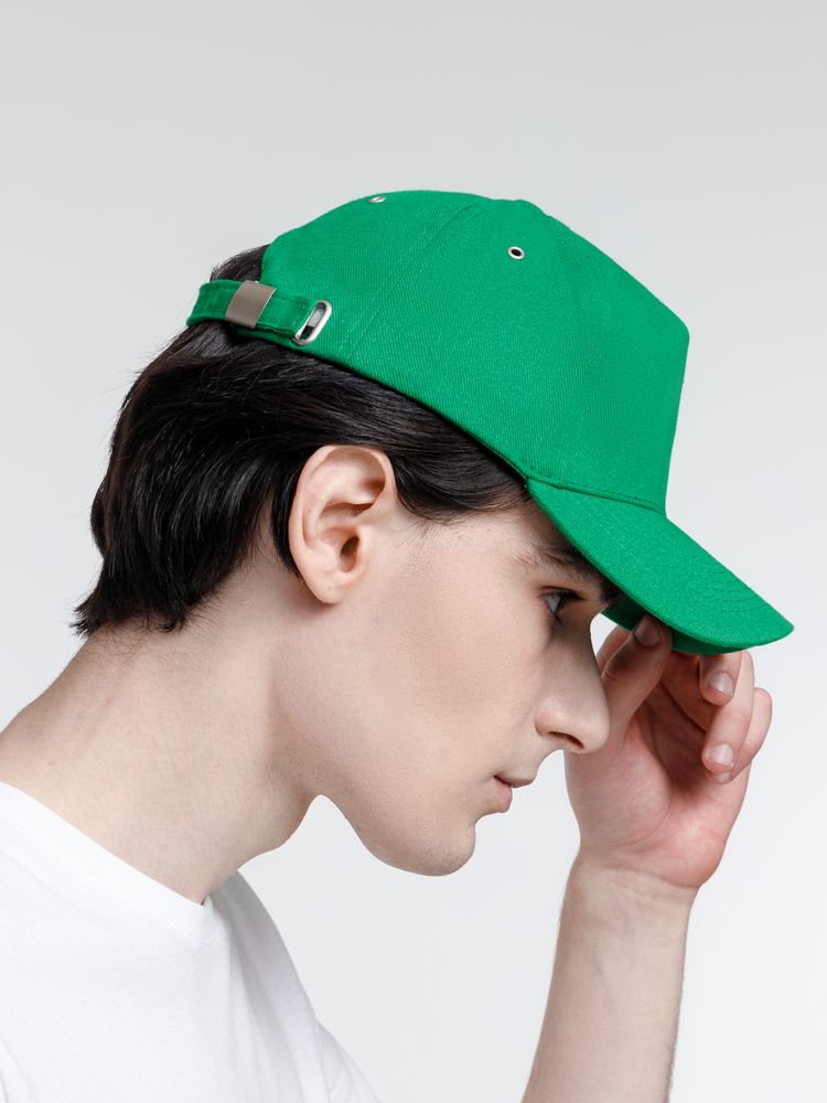 Минималистичная бейсболка с закругленным козырьком и большим местом для нанесения логотипа.