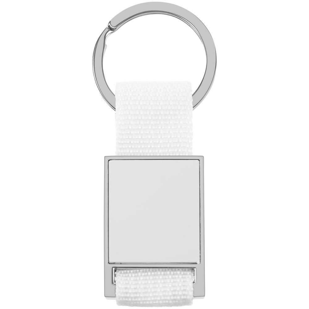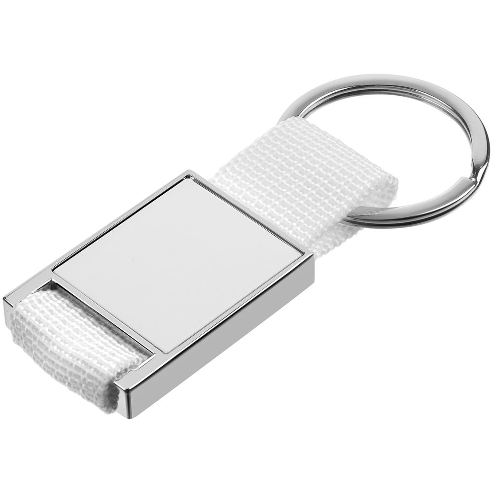 Элегантный металлический брелок с тканевой вставкой.