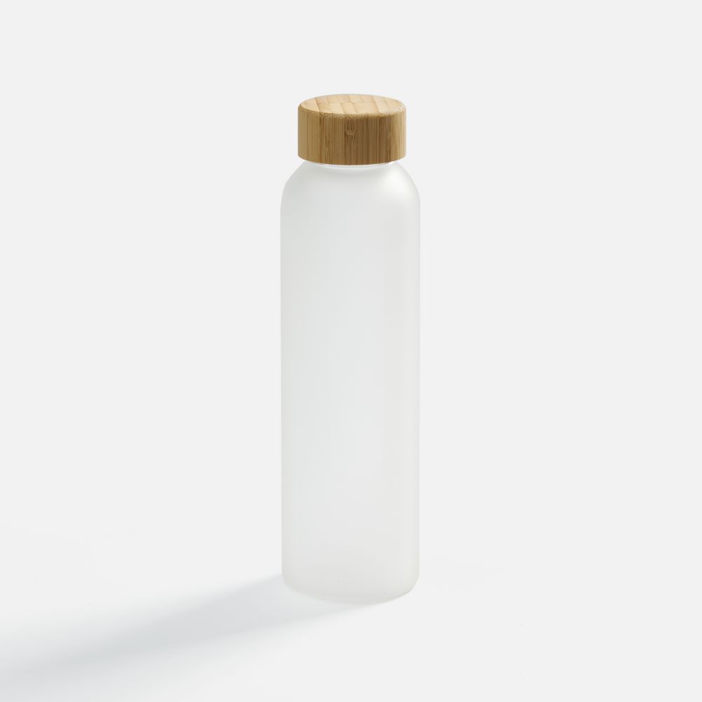 бутылка — боросиликатное стекло; крышка — бамбук, пластик, силикон