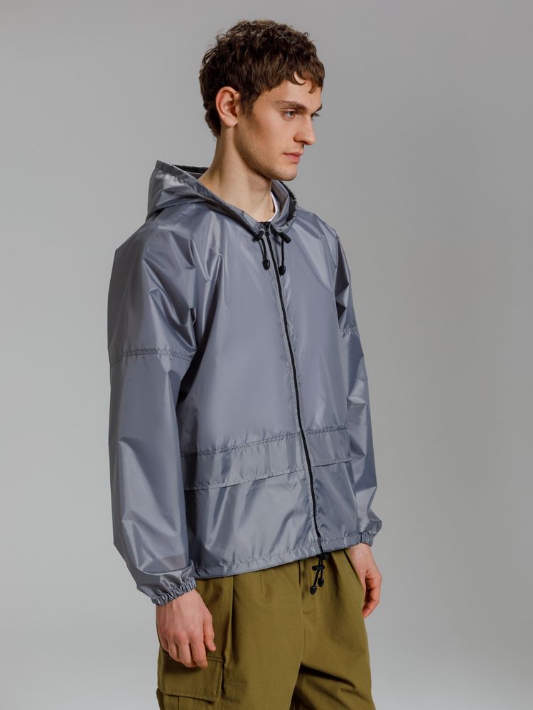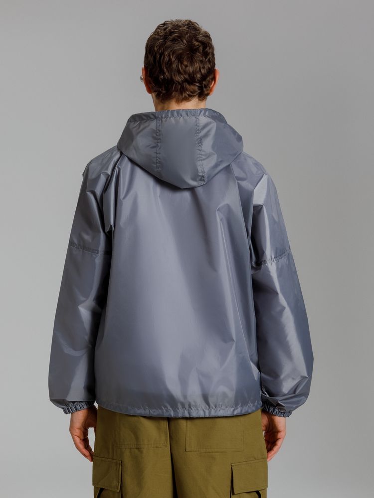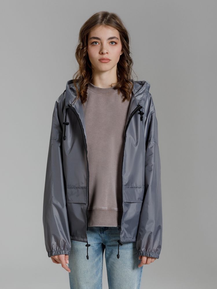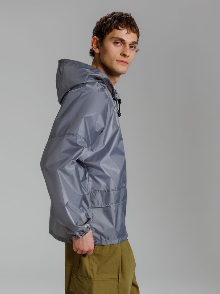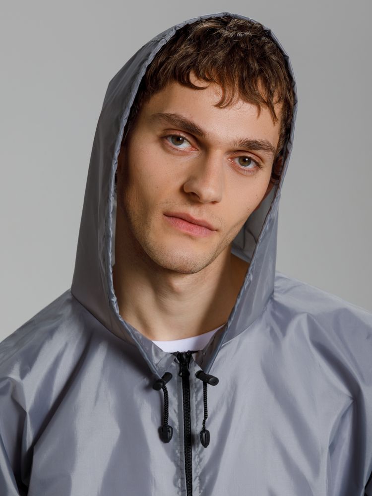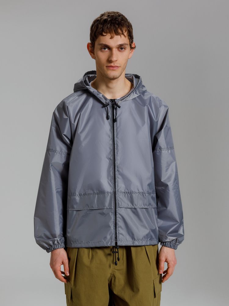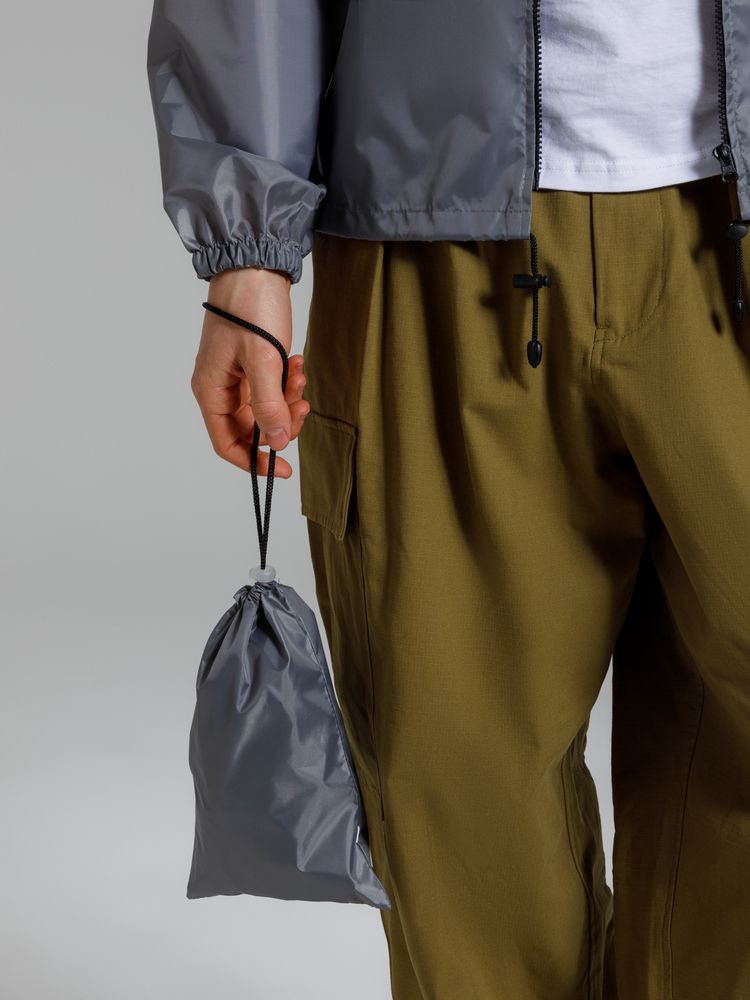 Укороченный дождевик свободного кроя из ткани таффета с влагозащитным покрытием. Складывается в мешочек — удобно брать с собой.