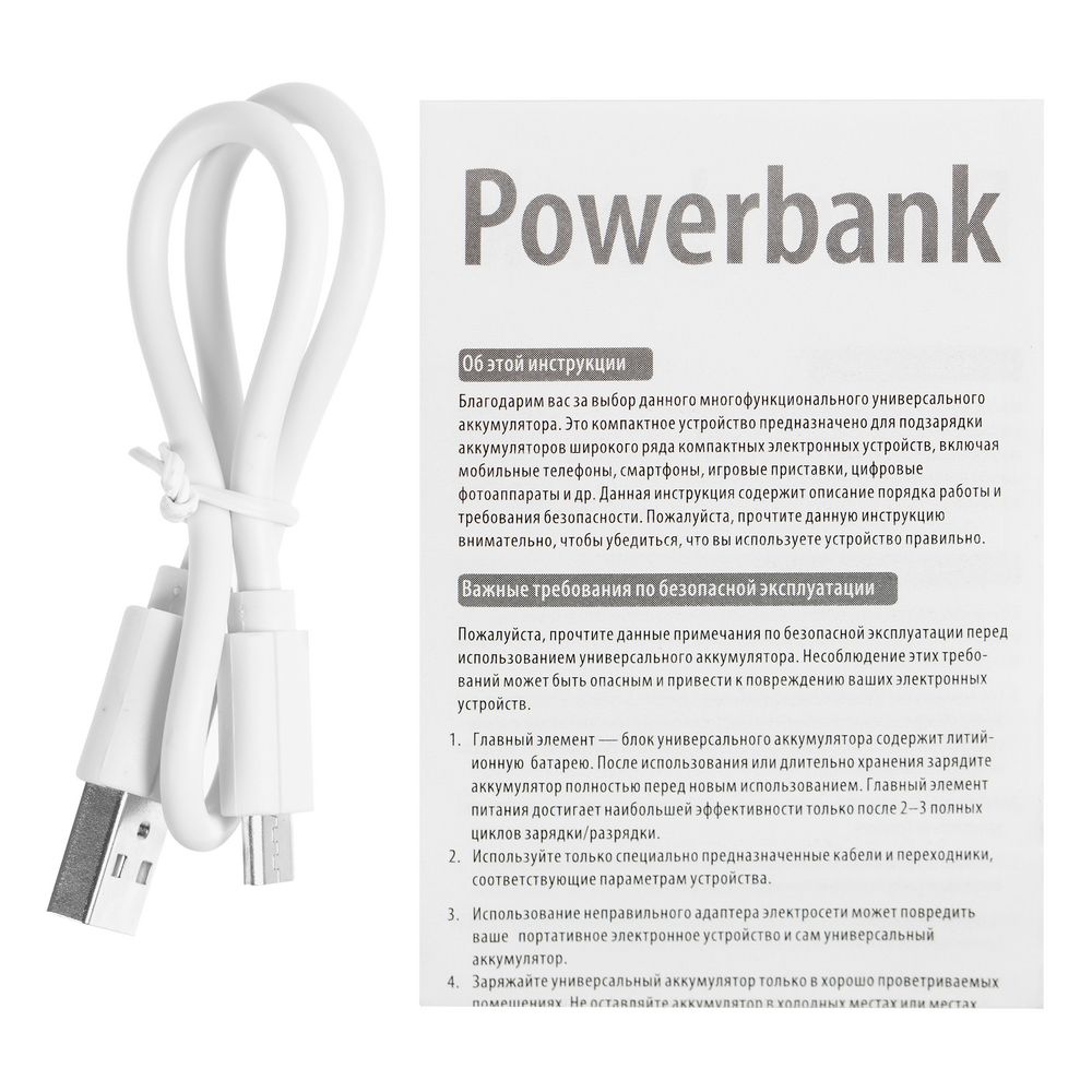 - В комплекте кабель для заряда аккумулятора, iPhone (по 14 модель) и устройств на Android. Разъём Type-C без функции обмена данными может не распознаваться iOS. Необходимо использовать рекомендованный производителем кабель USB-A – USB-С.