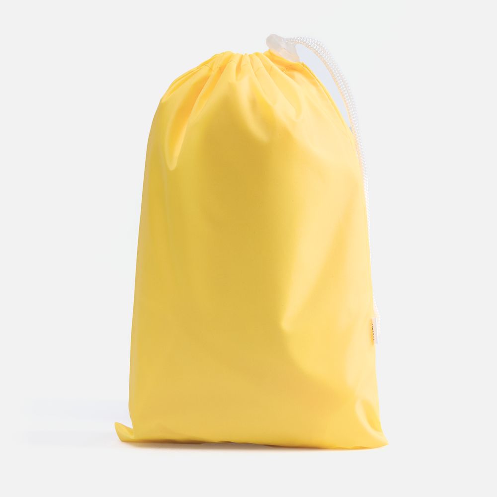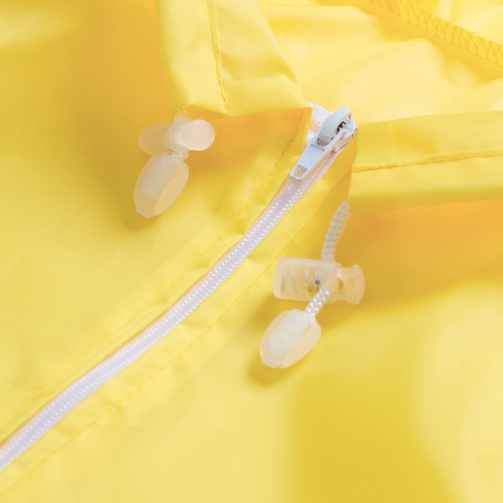 Детский дождевик на молнии из таффеты с влагозащитным покрытием. Складывается в мешочек — удобно брать с собой.