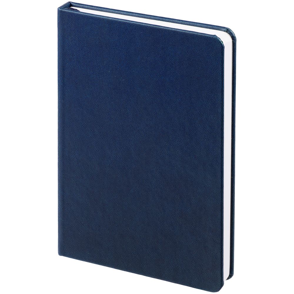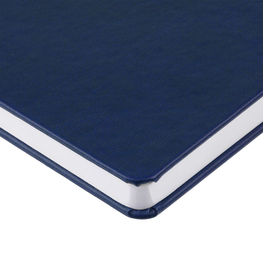 Ежедневник с твердой обложкой, выполнен из материала Latte, темно-синий ХХ, дополнен ляссе в цвет обложки.