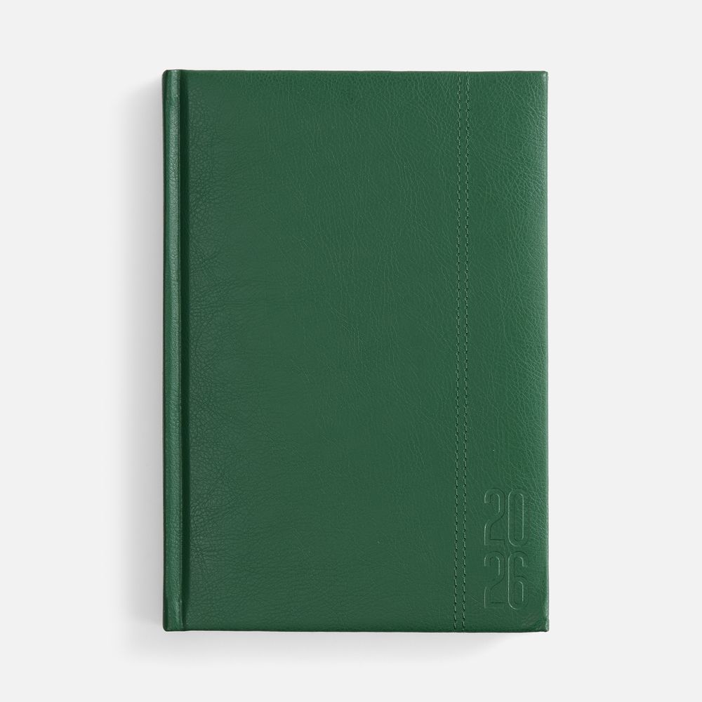 Ежедневник с твердой обложкой с поролоном из искусственной кожи, дополнен декоративной строчкой, капталом и ляссе в цвет ежедневника.