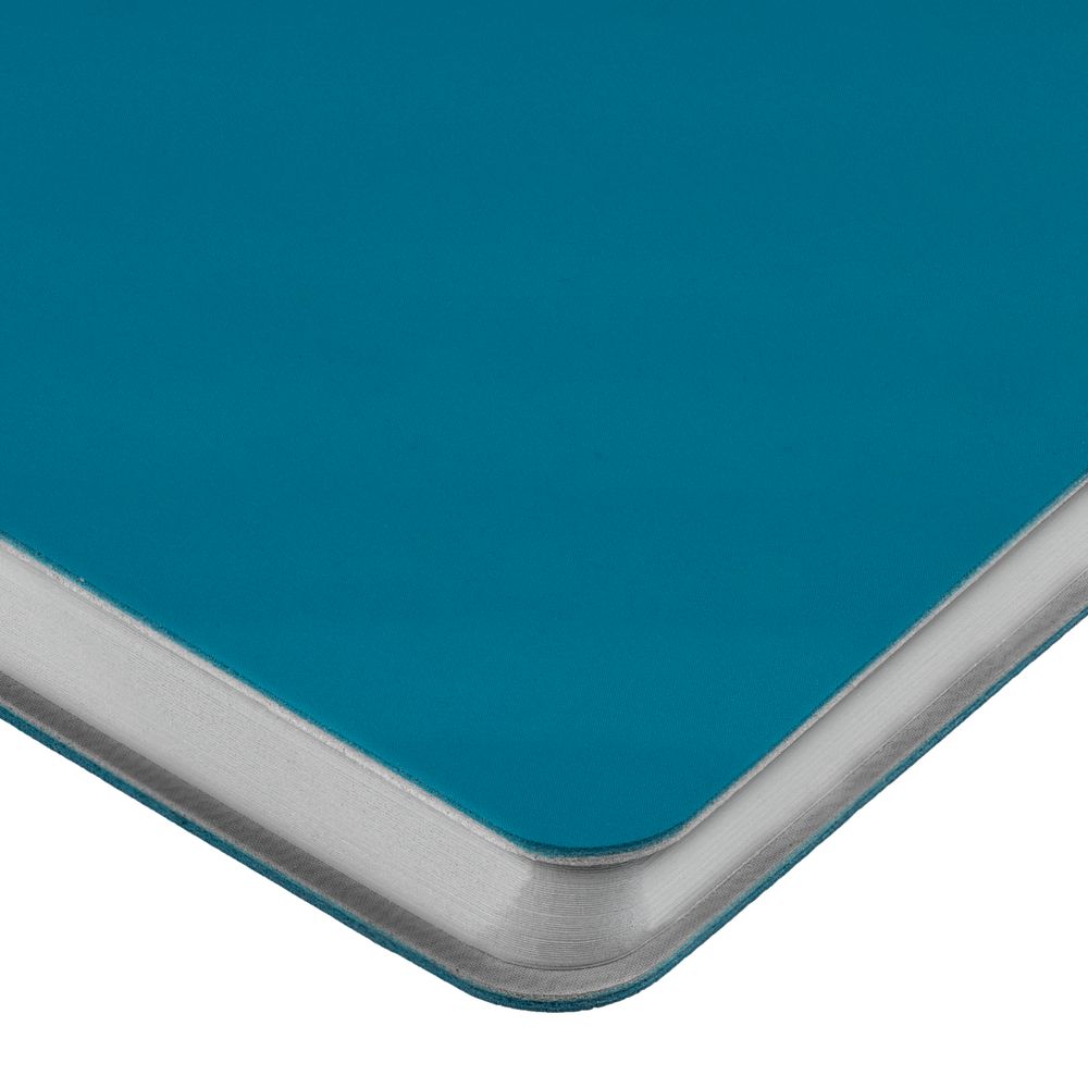 Ежедневник с гибкой обложкой выполнен из материала Soft Touch, цвет морской волны II и серого Latte (внутренняя часть обложки).