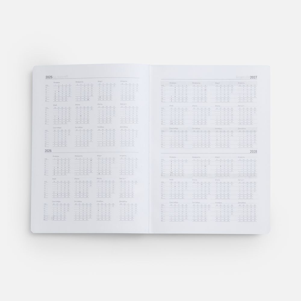 Ежедневник с твердой обложкой, выполнен из материала Latte, зеленый FF, обрез зеленого цвета, дополнен ляссе зеленого цвета и резинкой с металлическим шильдом.