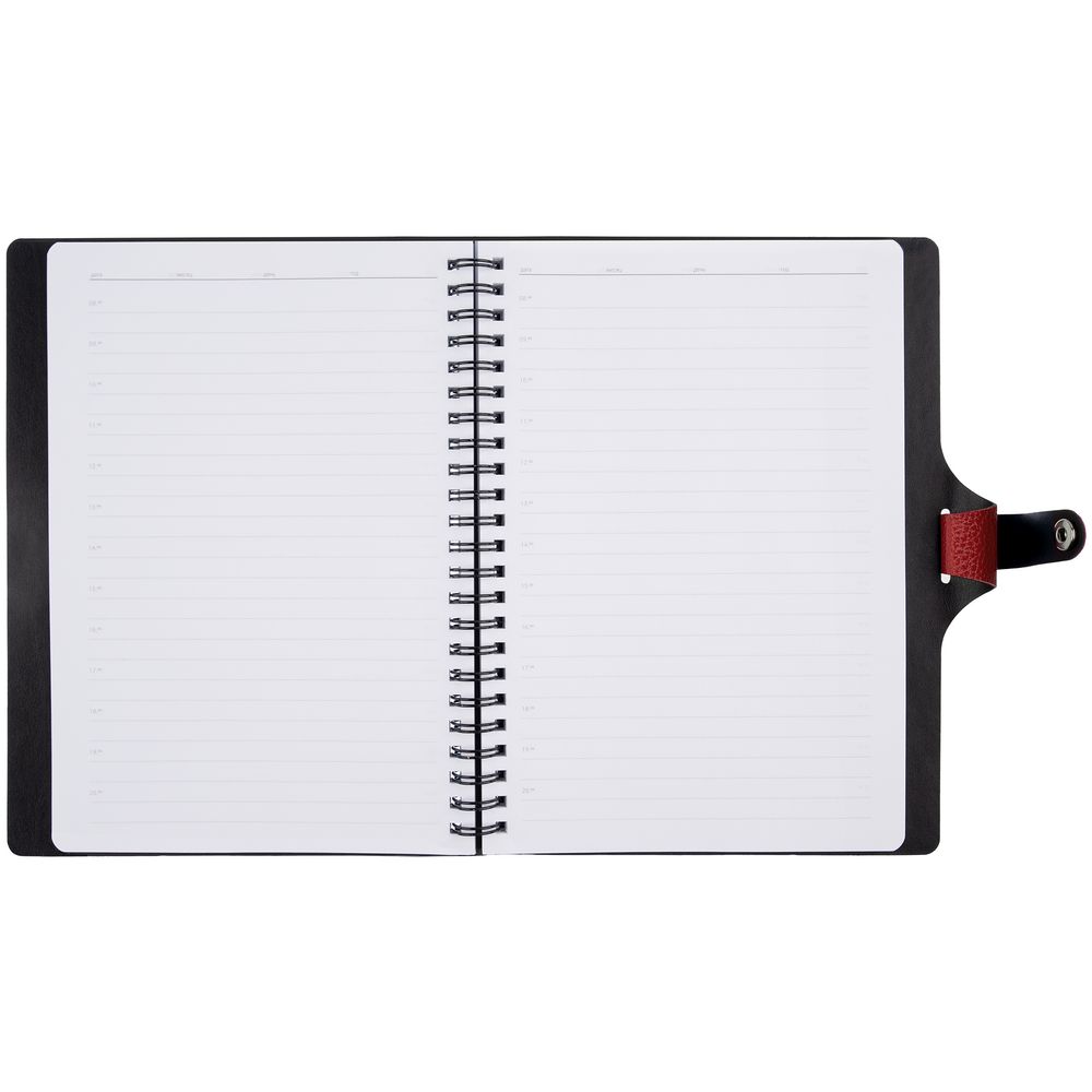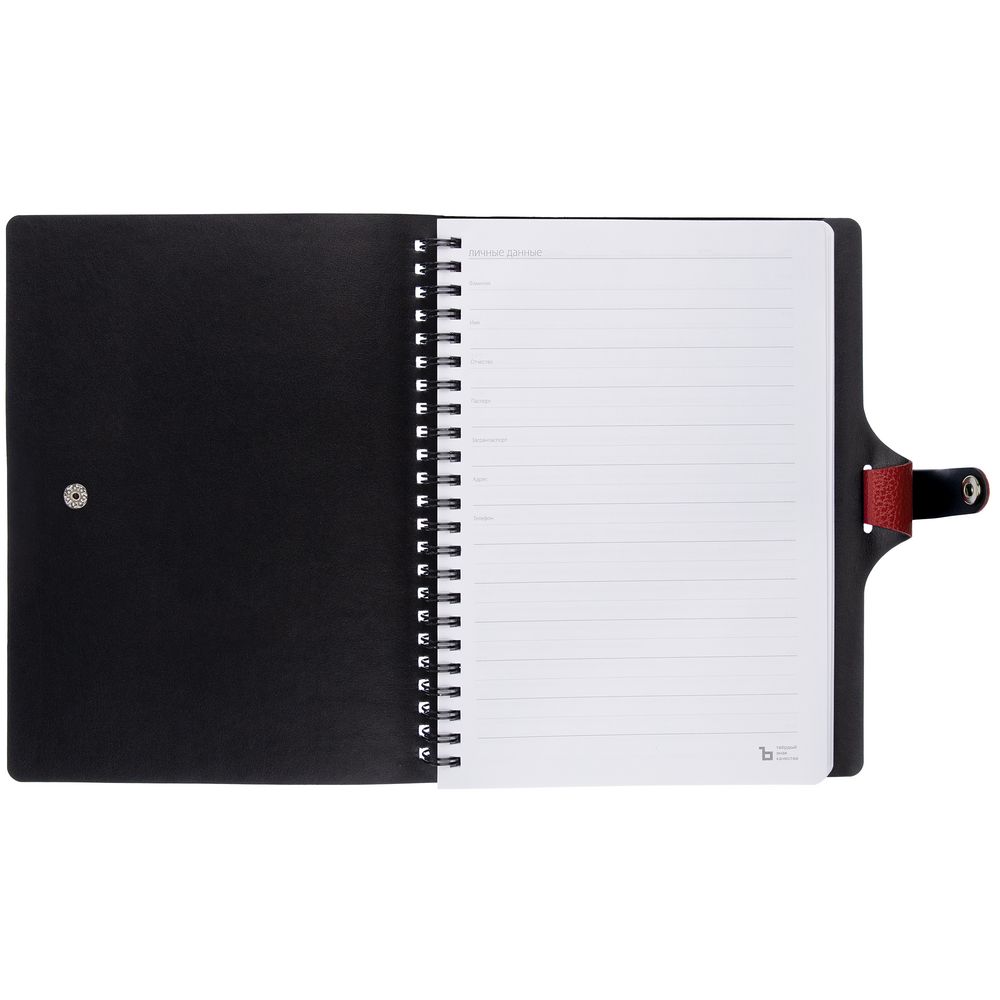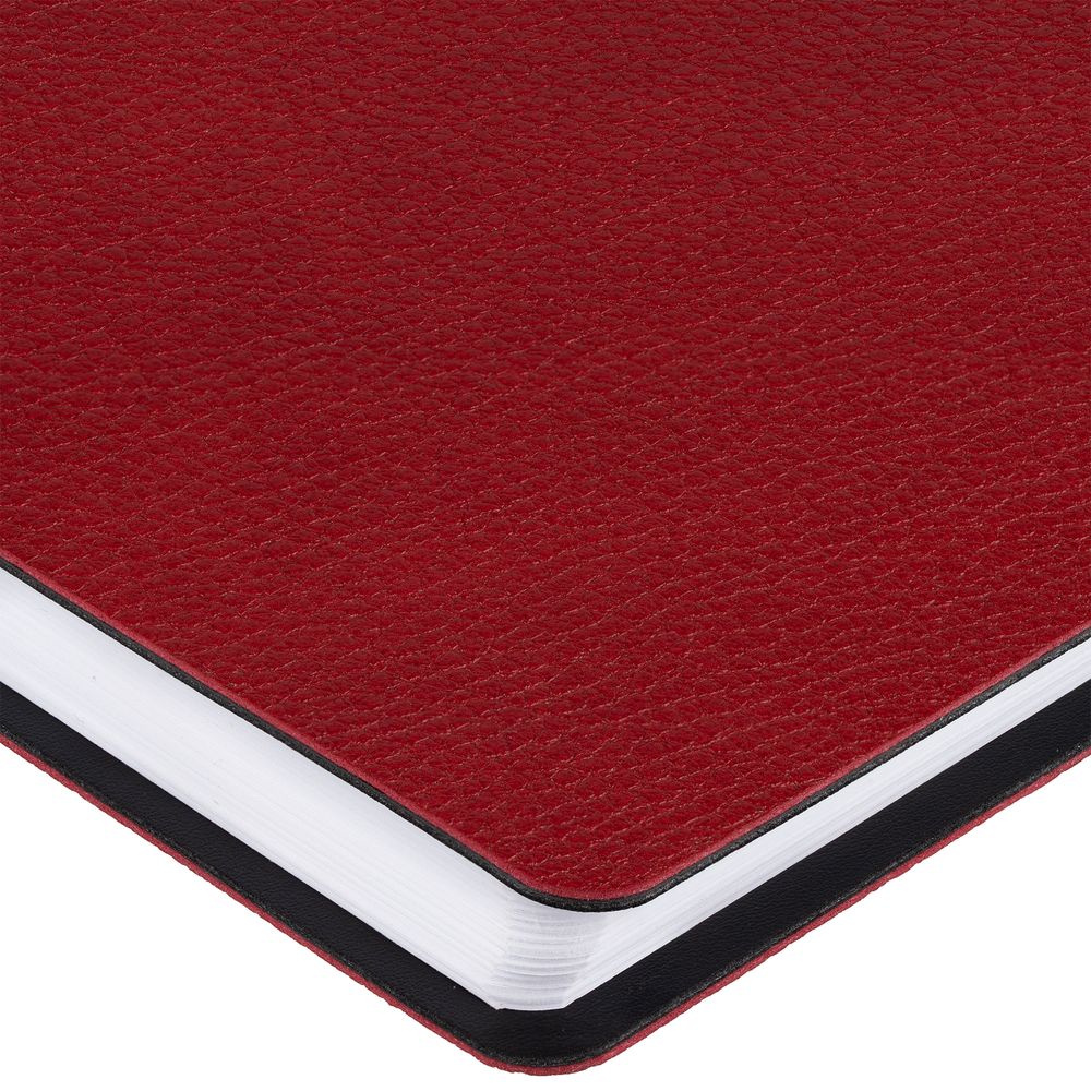 Ежедневник с гибкой обложкой, выполнен из материалов La Fite, красный РР и Waltz черный АА.