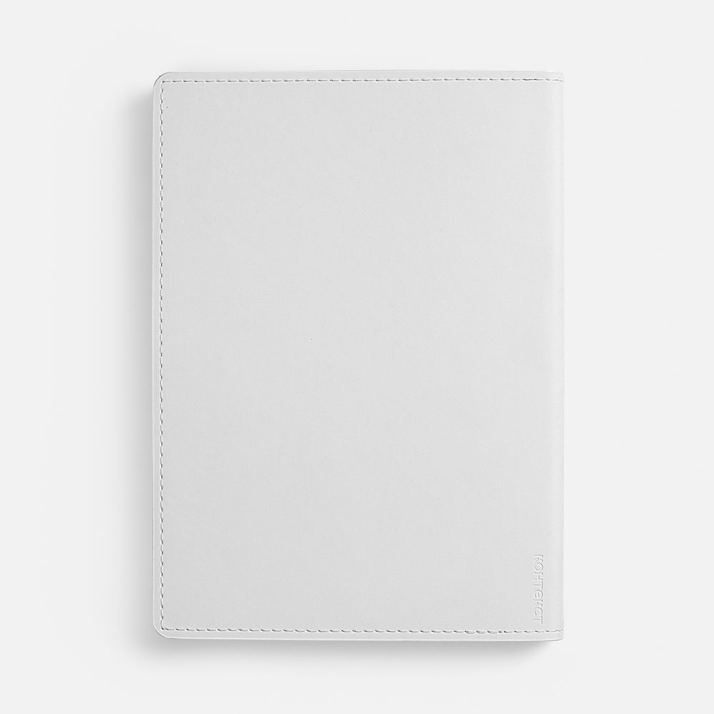 Ежедневник с гибкой обложкой из материала Soft Touch, белый BB, дополнен петелькой из покровного материала для ручки, капталом, ляссе и закрашенным срезом обложки в цвет материала.