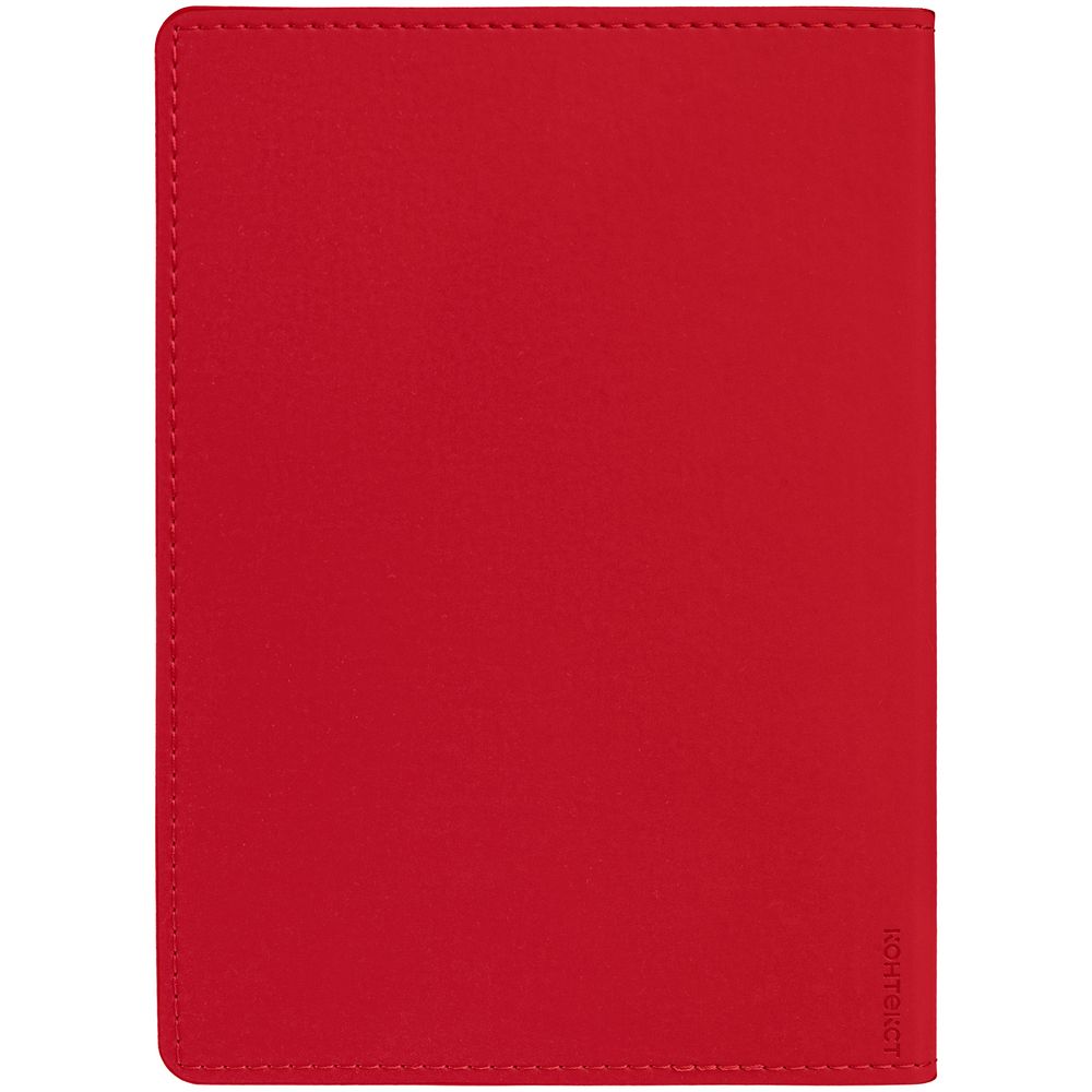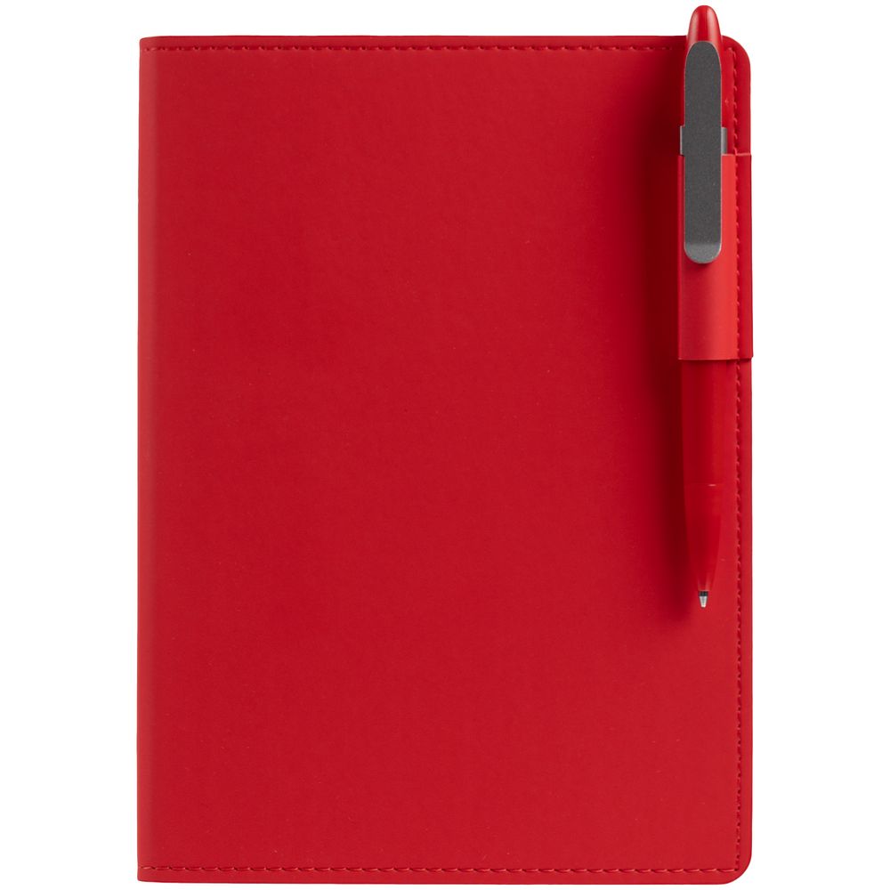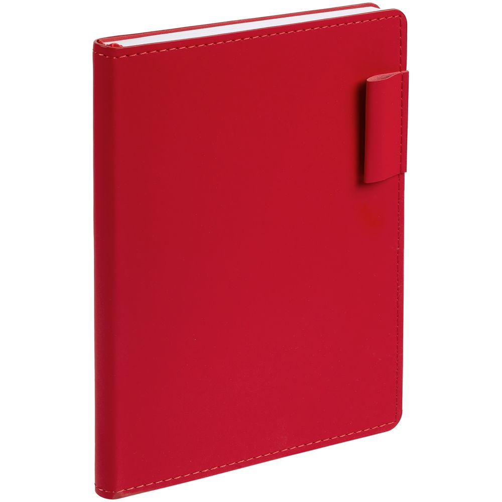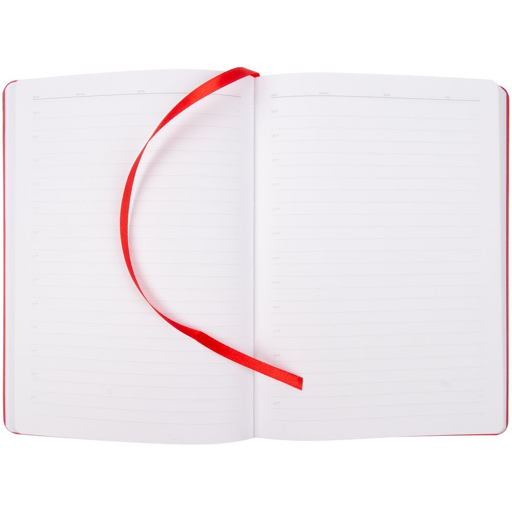 Ежедневник с гибкой обложкой из материала Soft Touch Ultra, красный РР и Latte, красный (внутренний материал), дополнен петелькой для ручки из покровного материала, капталом, ляссе и закрашенным срезом обложки в цвет материала.