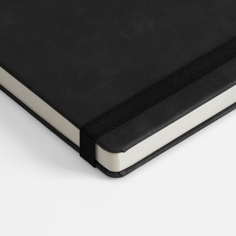 Ежедневник с твердой обложкой, выполнен из материала Nubuck Touch, черный AA, дополнен ляссе в цвет обложки.