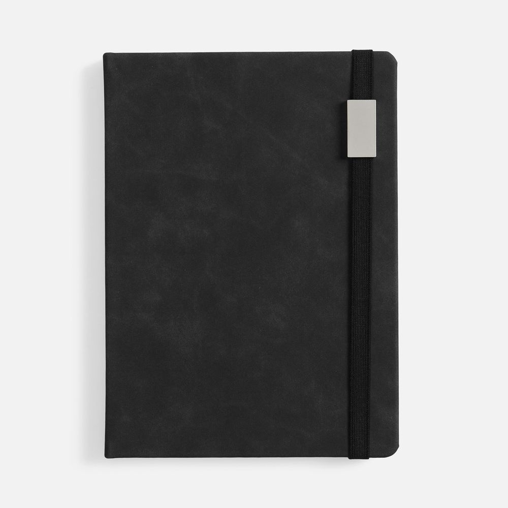 + Free ShippingЕжедневник с твердой обложкой, выполнен из материала Nubuck Touch, черный AA, дополнен ляссе в цвет обложки.