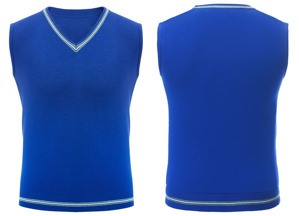 Жилет с вывязанным логотипом и индивидуальным рисунком в фирменной цветовой гамме.