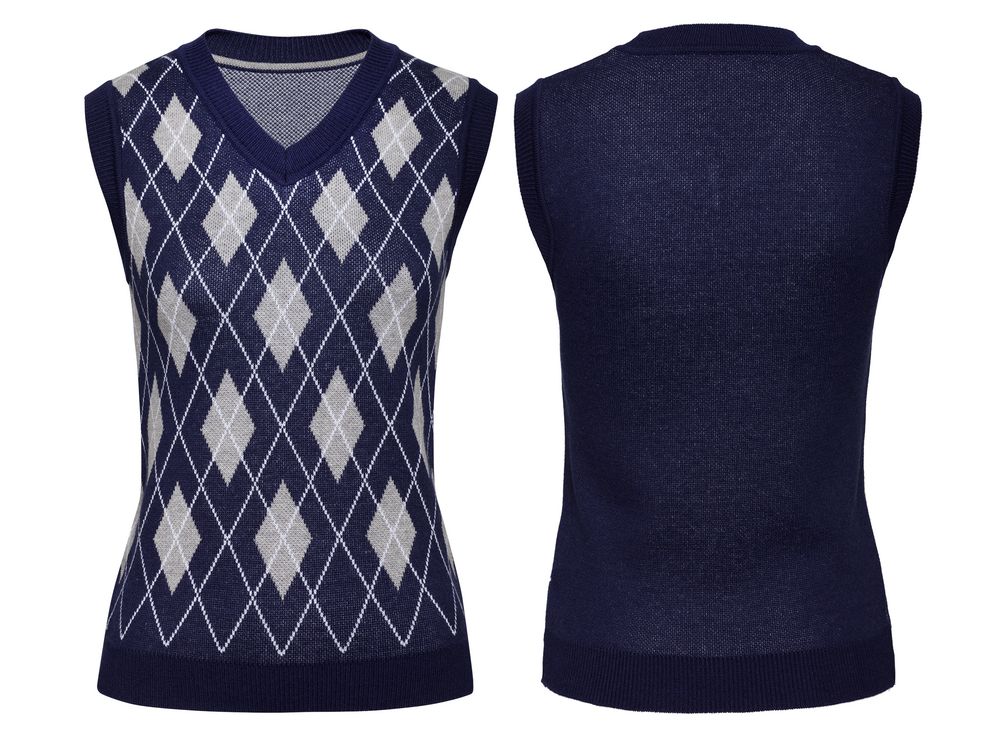 Модель: жилет жаккардовой вязки, плотный и теплый, 2–3 цвета нитей, гладкая поверхность. На бейках горловины и проймы возможна отделка в виде контрастных полос (не более 3-х цветов).
