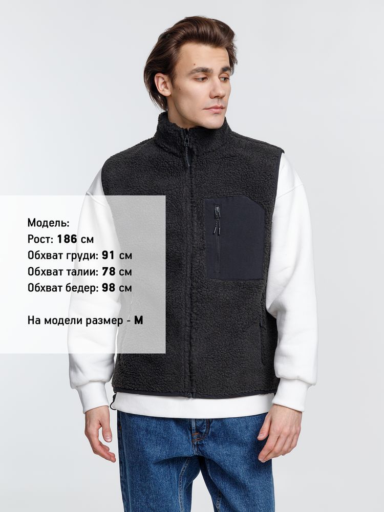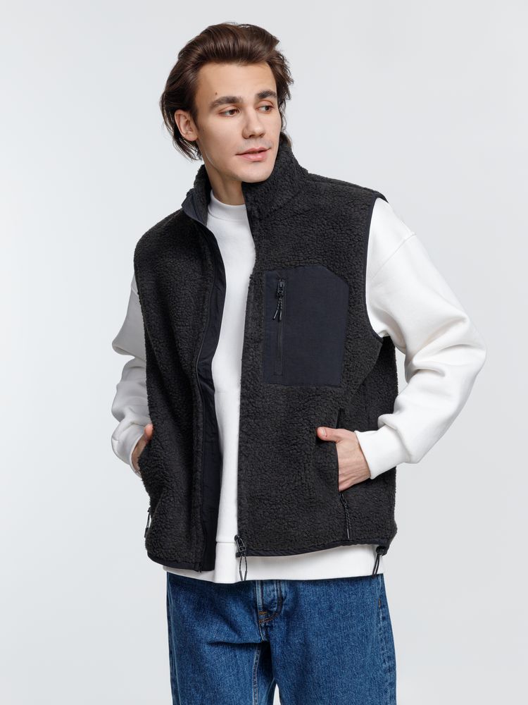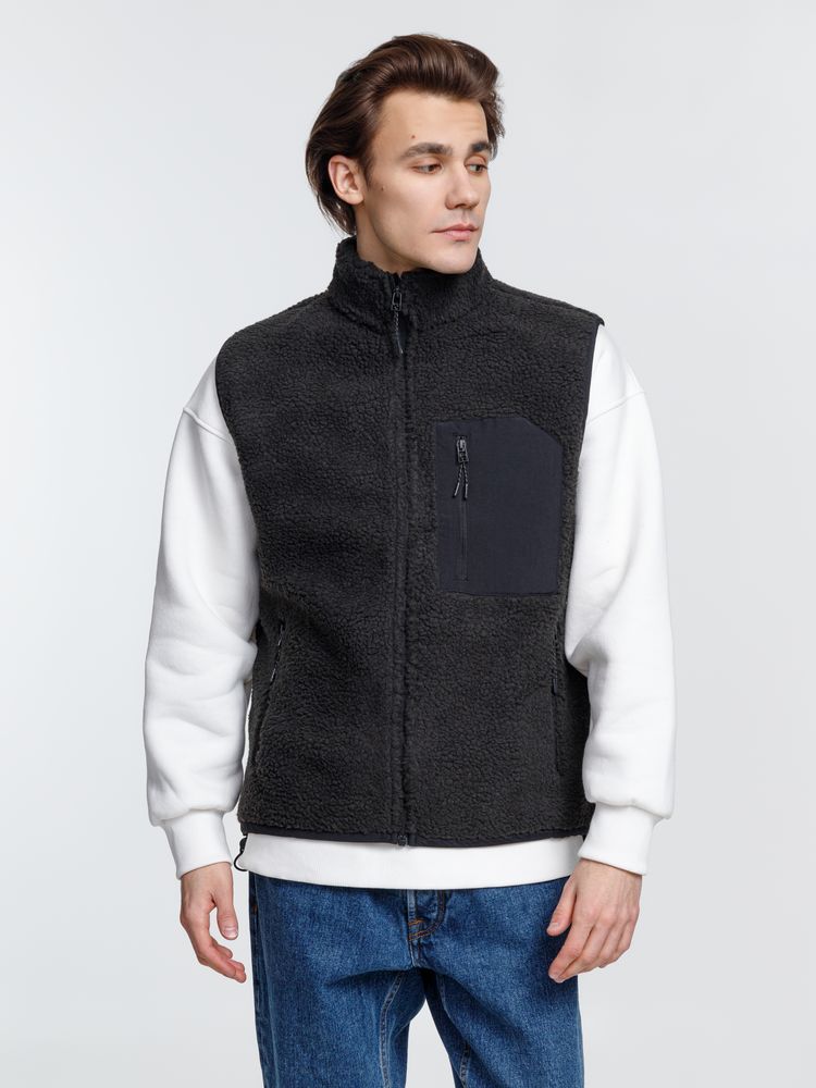 Жилет унисекс из фактурной искусственной шерпы с гладкой отделкой из таслана.