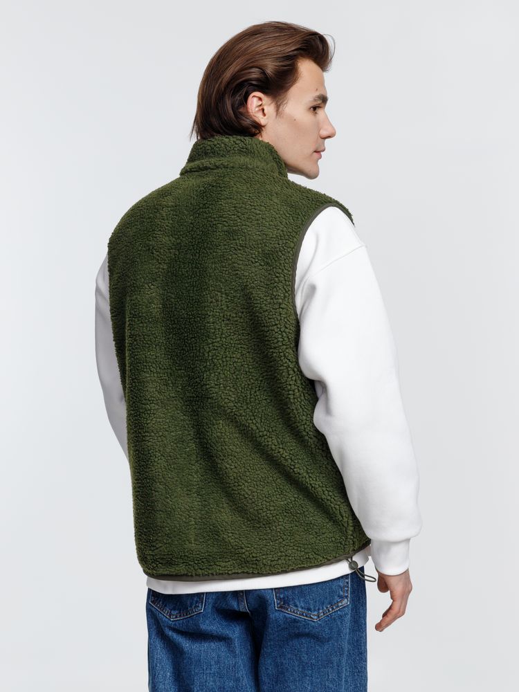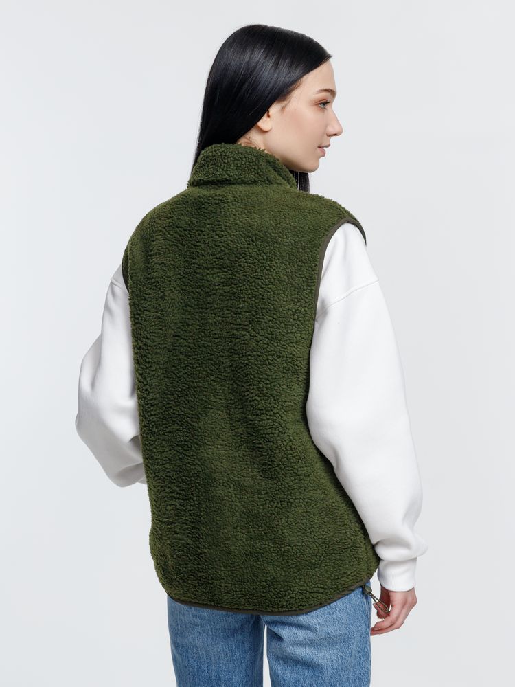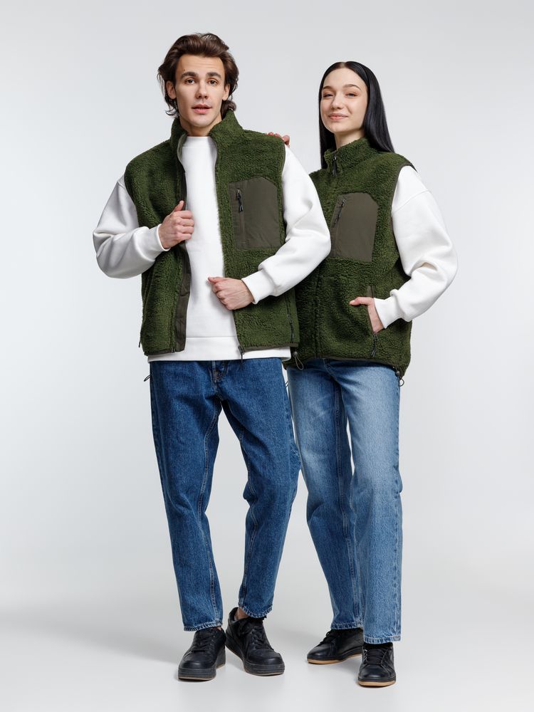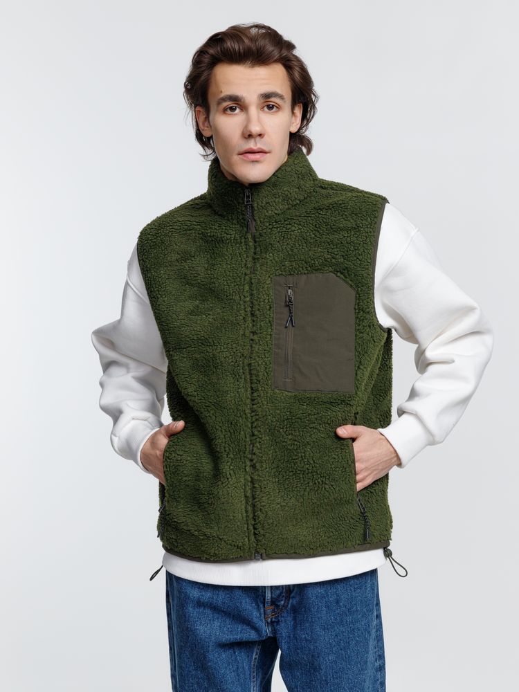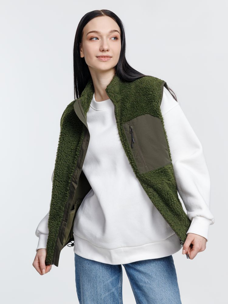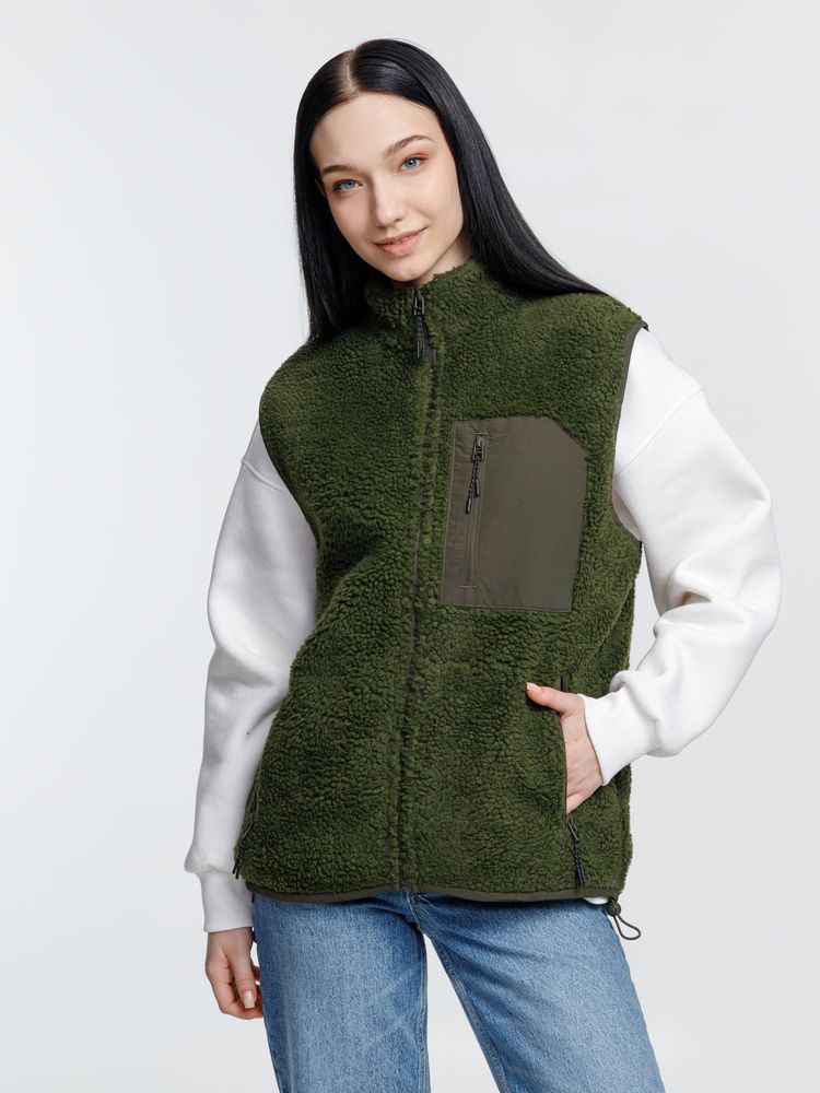 Жилет унисекс из фактурной искусственной шерпы с гладкой отделкой из таслана.