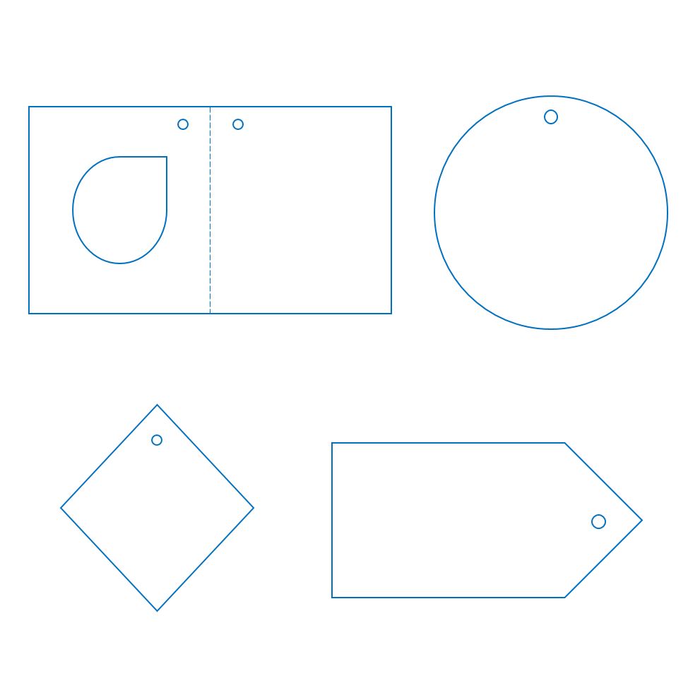 - Для удобства крепления можно добавить круглые или овальные отверстия внутри этикетки. Минимальный диаметр отверстия 4 мм