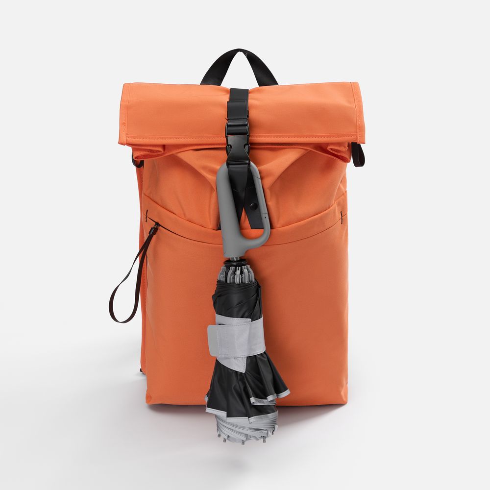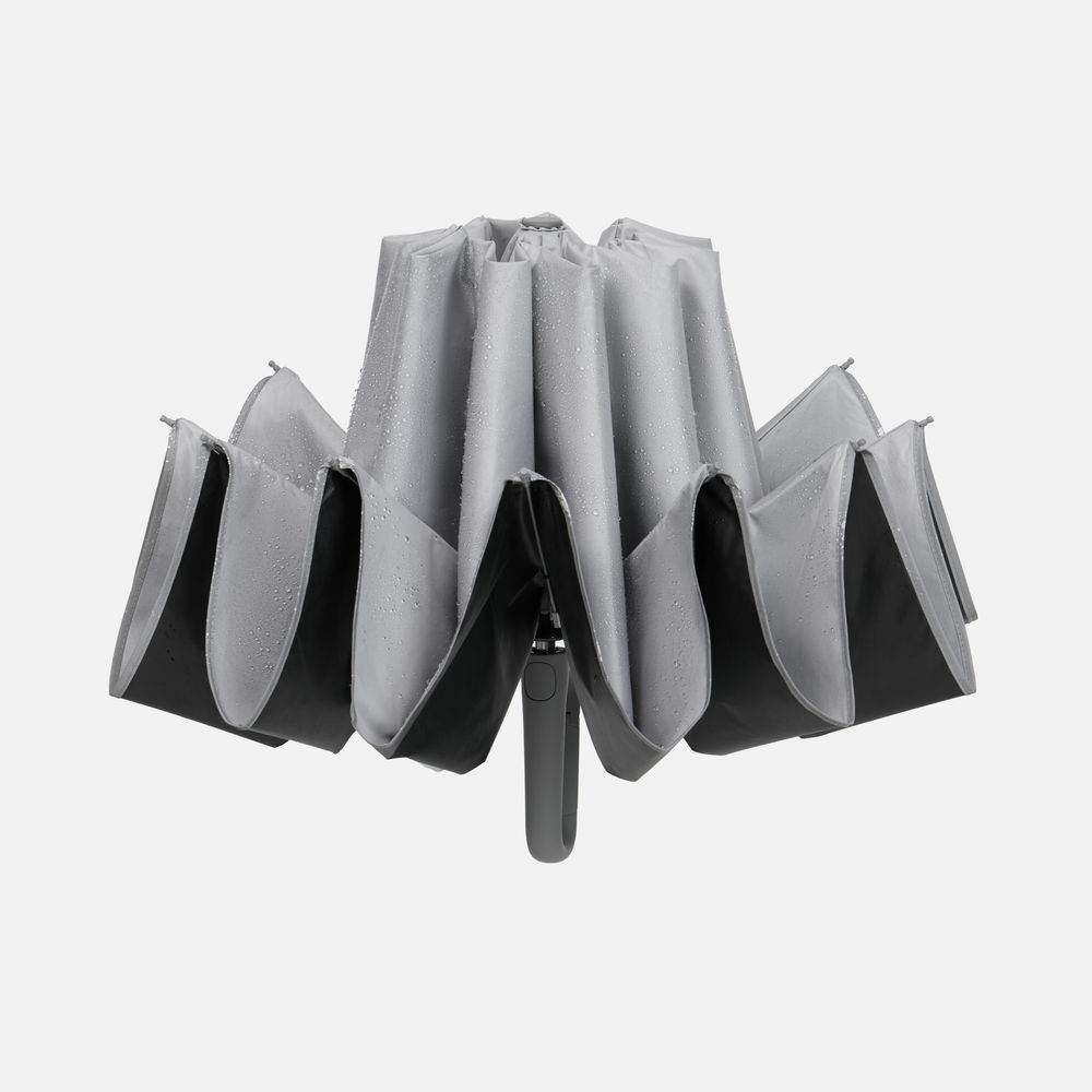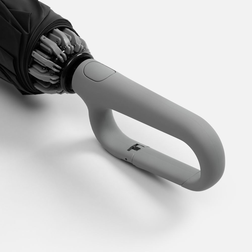 Складываясь после дождя, он прячет мокрую поверхность внутри, а сухая остается снаружи — в закрытом положении зонт не побеспокоит окружающих и не намочит одежду. За ручку-карабин зонт удобно подвесить, например, на рюкзак.