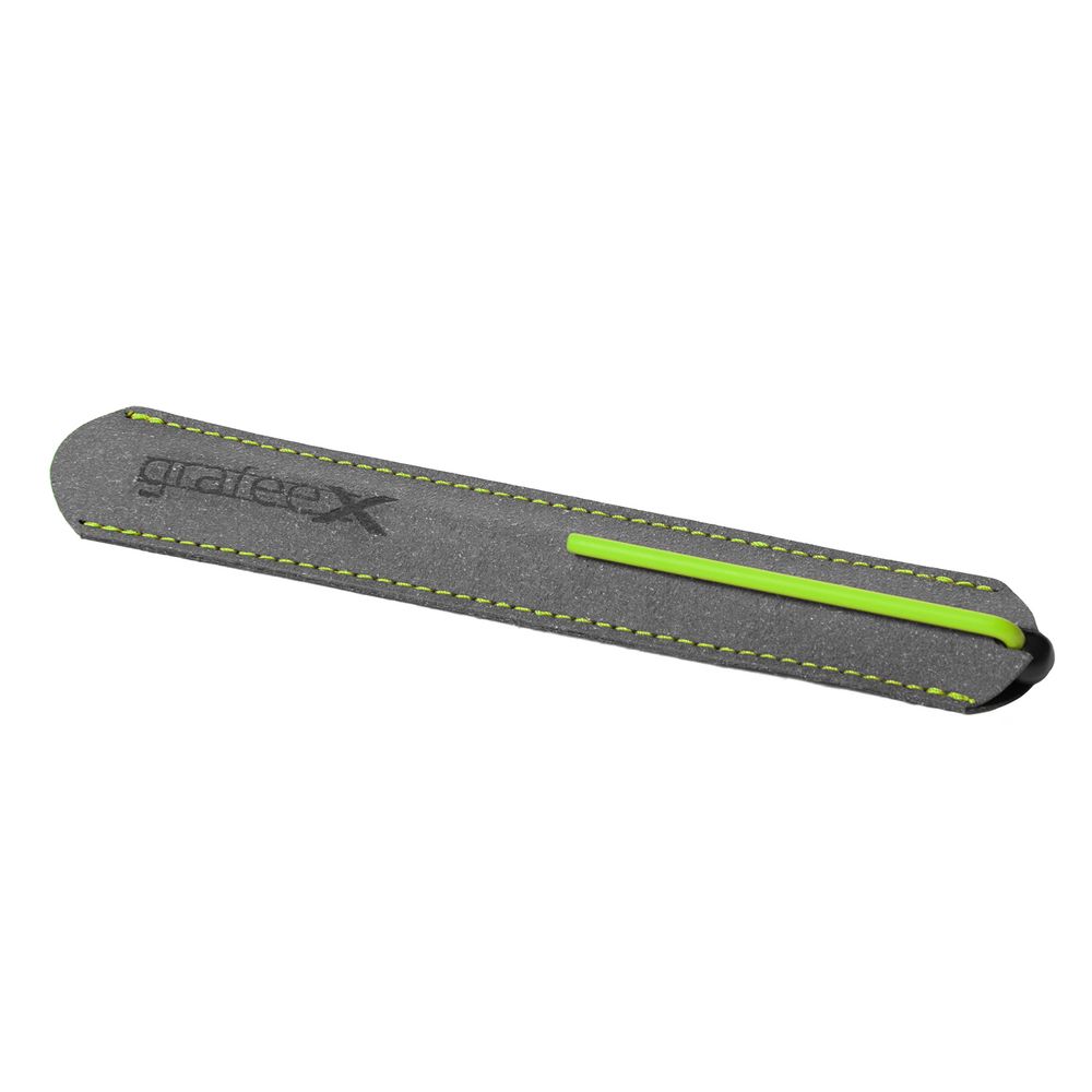Карандаш Pininfarina GraFeeX с цельным корпусом матового черного цвета, ярким клипом и наконечником из материала GrafeeX, полученного в результате спекания мелких частиц графита при высоких температурах. Этот материал расходуется крайне экономно, при этом след нанесения не отличается от обычного графитного карандаша.