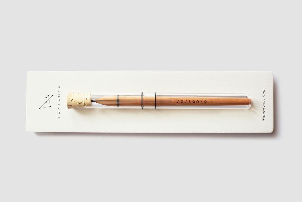 Каждый карандаш Sostanza изготовляется вручную, имеет сменный грифель и поставляется в прозрачной стеклянной колбе.