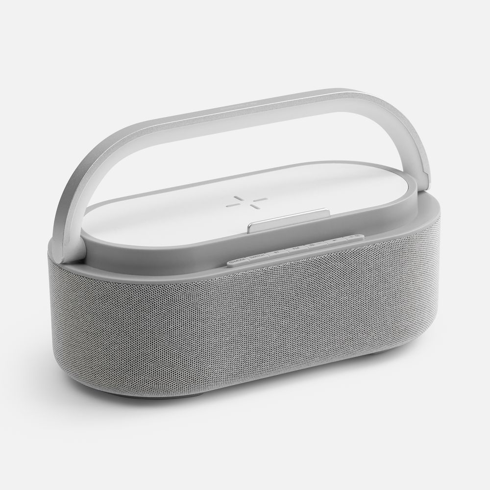 Два динамика мощностью 5 Вт позволяют наполнить звуком помещение площадью до 30 м². Емкая встроенная батарея позволяет использовать колонку и лампу без привязки к розетке.