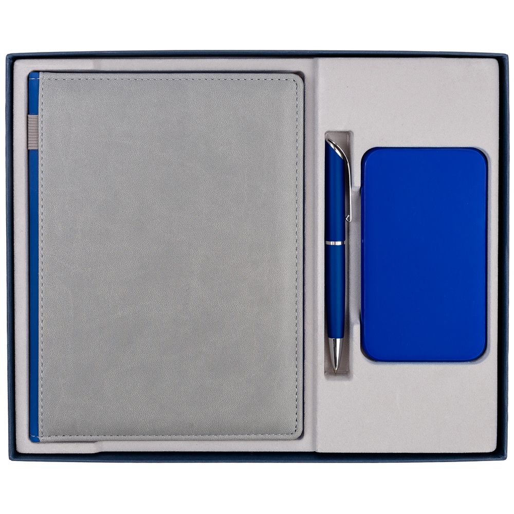 Коробка Overlap под ежедневник, аккумулятор и ручку, ver.2, синяя