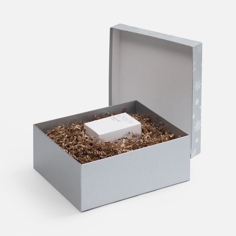 + Free ShippingКоробка выполнена из переплетного картона толщиной 1,5 мм, кашированного бумагой TPG с тиснением серебристой фольгой.