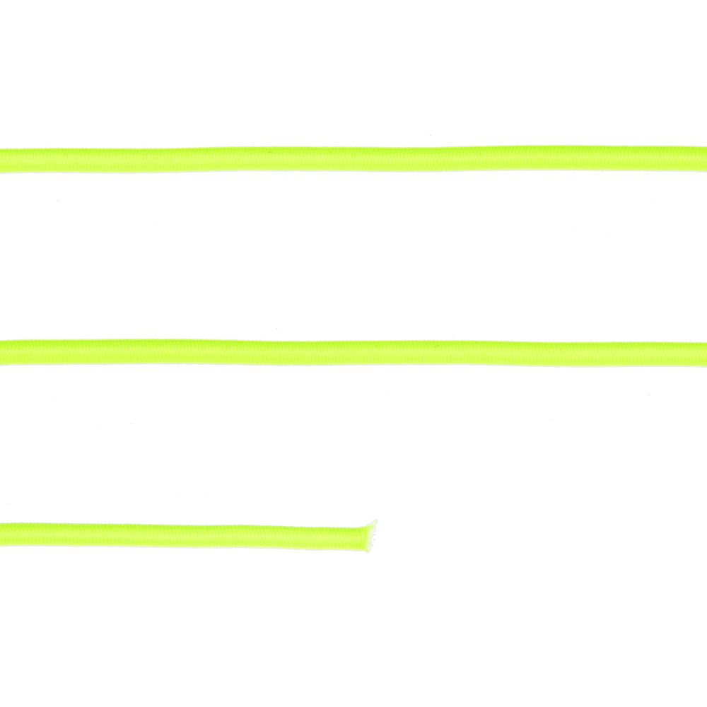 Резинка представляет собой пучок латексных нитей с внешней полиэфирной оплеткой. Такая конструкция обеспечивает плавное растяжение и защищает резинку от разрыва и повреждений.