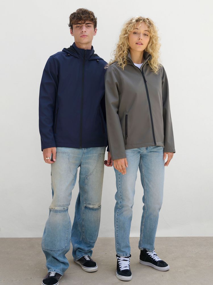 внешняя сторона — переработанный полиэстер, 100%; софтшелл, плотность 280 г/м²; изнанка — полиэстер 100%, флис