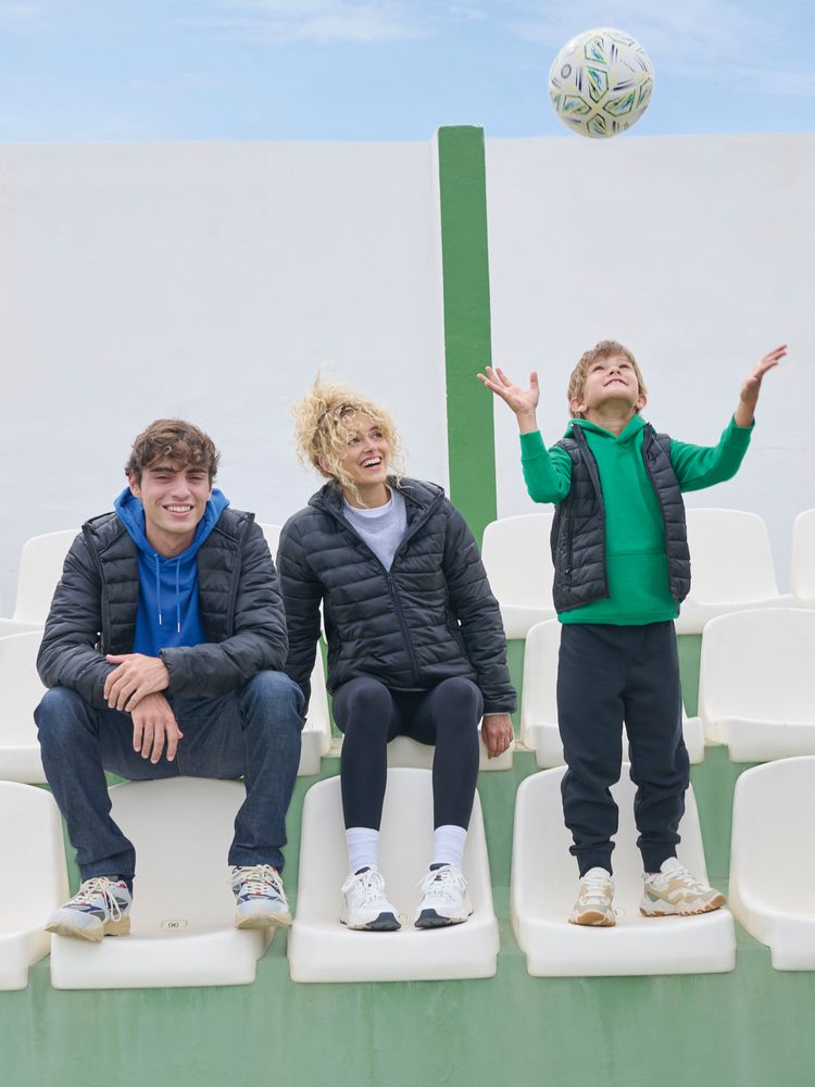 верх и подкладка — переработанный полиэстер, 100%; плотность 280Т, таффета; утеплитель — полиэстер 100%, полиэфирный пух