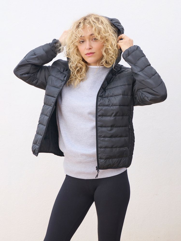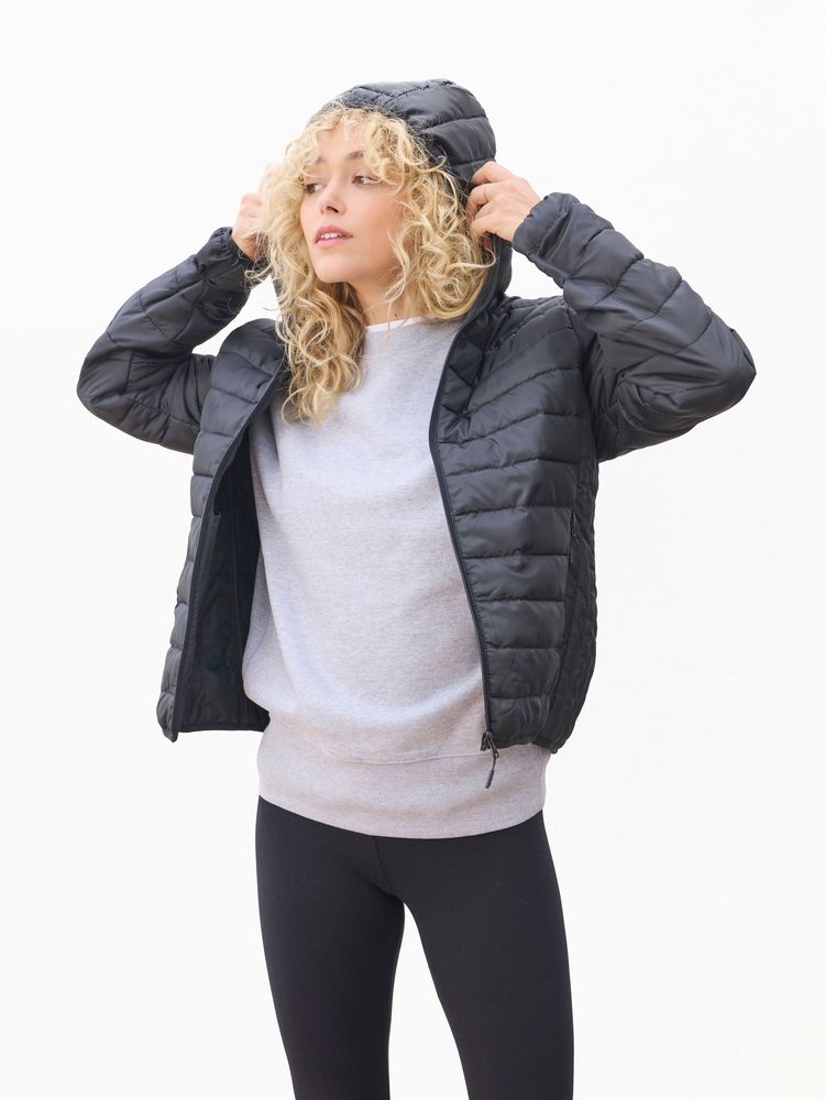 верх и подкладка — переработанный полиэстер, 100%; плотность 280Т, таффета; утеплитель — полиэстер 100%, полиэфирный пух