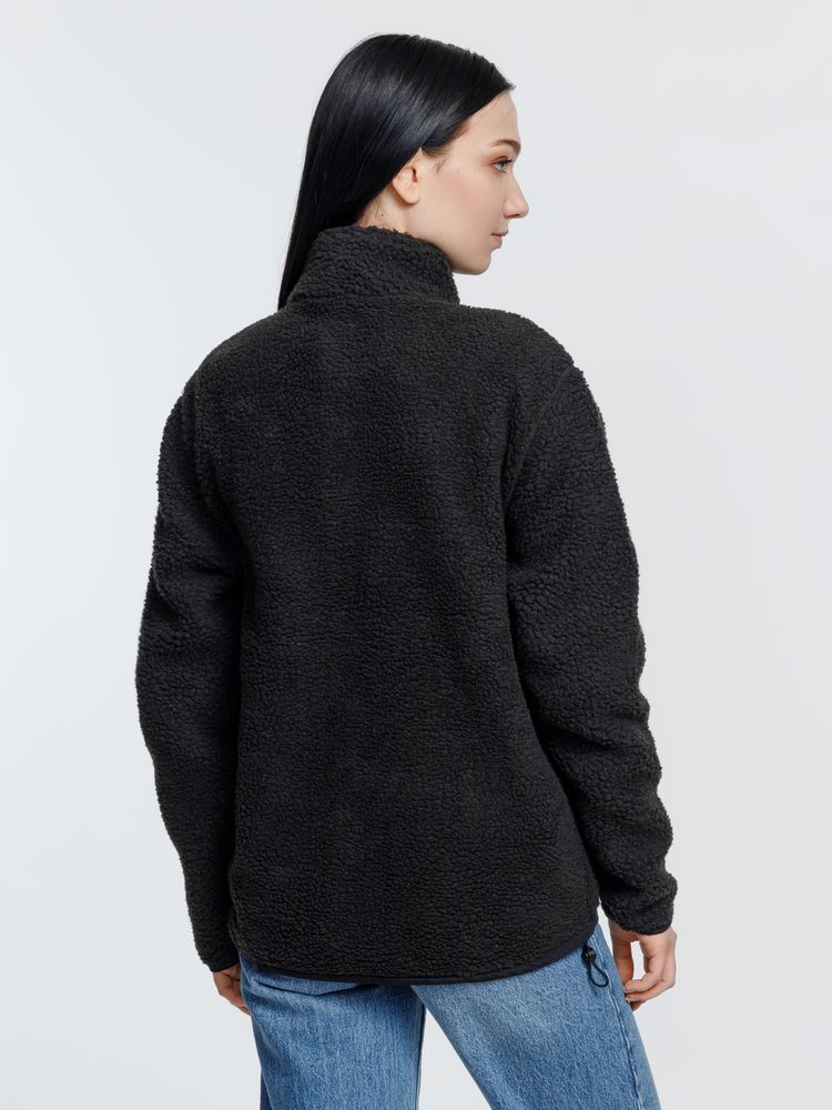 Куртка унисекс из фактурной искусственной шерпы с гладкой отделкой из таслана.