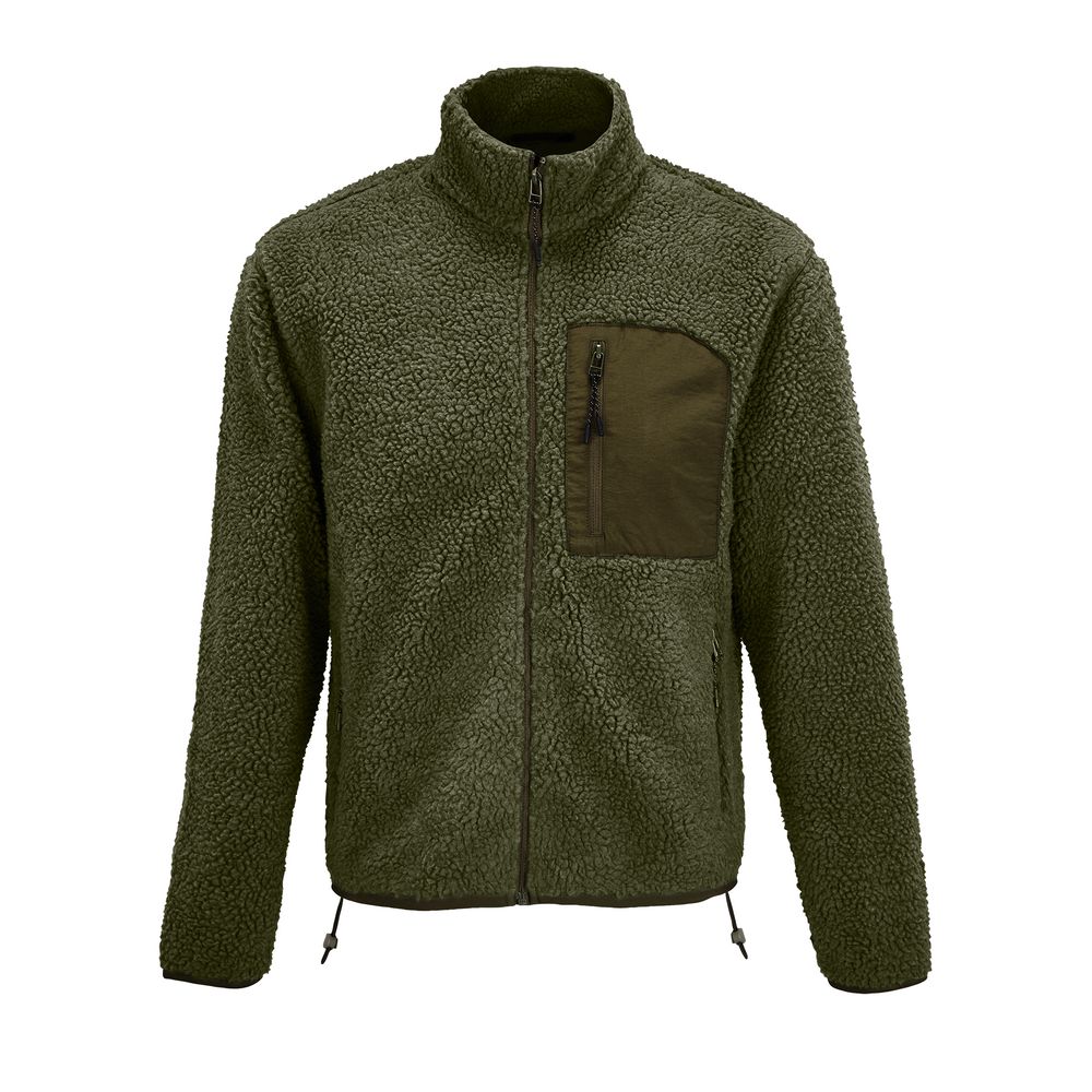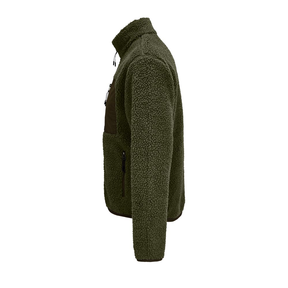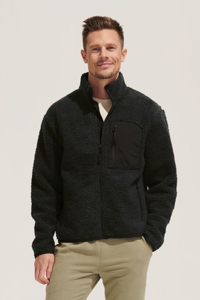 Куртка унисекс из фактурной искусственной шерпы с гладкой отделкой из таслана.