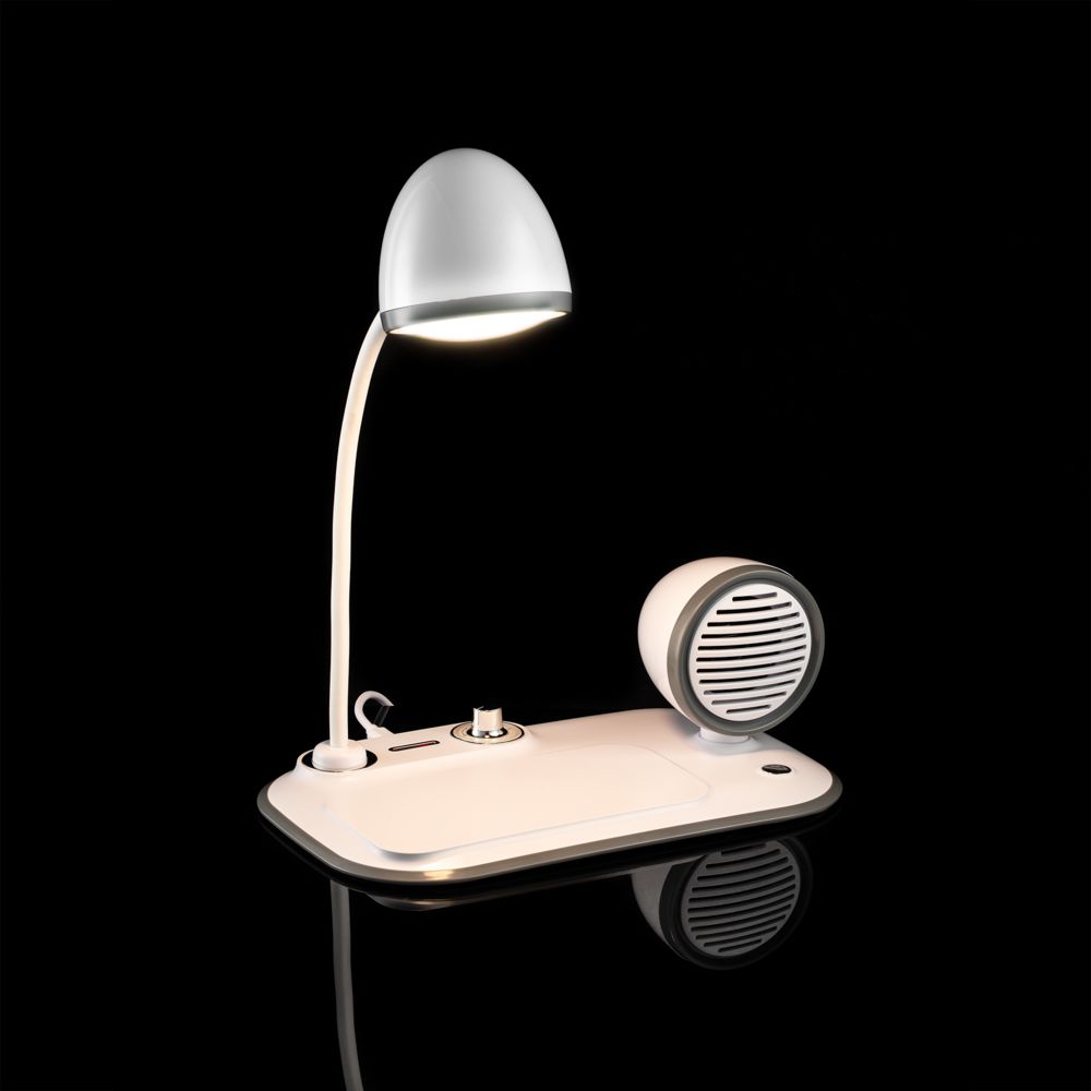 Устройство способно не только осветить рабочее пространство, помочь зарядить гаджет, но и удивить своим мультимедийным функционалом благодаря мощному динамику на 5 Вт. Мощности встроенной колонки хватает на то, чтобы заполнить звуком помещение до 25 м².