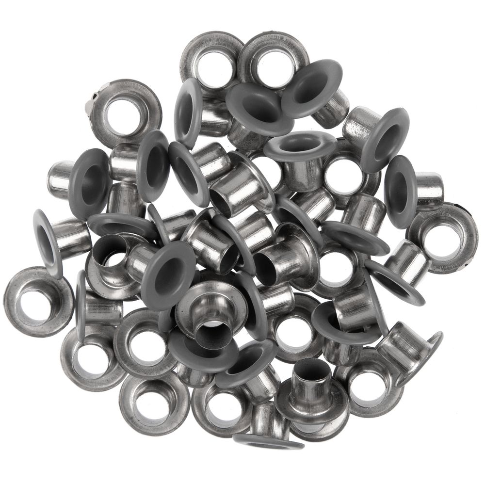 При монтаже в изделии проделывают отверстие соответствующего диаметра, с одной стороны в него вставляют втулку люверса, а с другой надевают на втулку шайбу и закрепляют путем развальцовки втулки. Если у вас нет специального инструмента для установки люверсов, рекомендуем заказывать установку люверсов у нас.