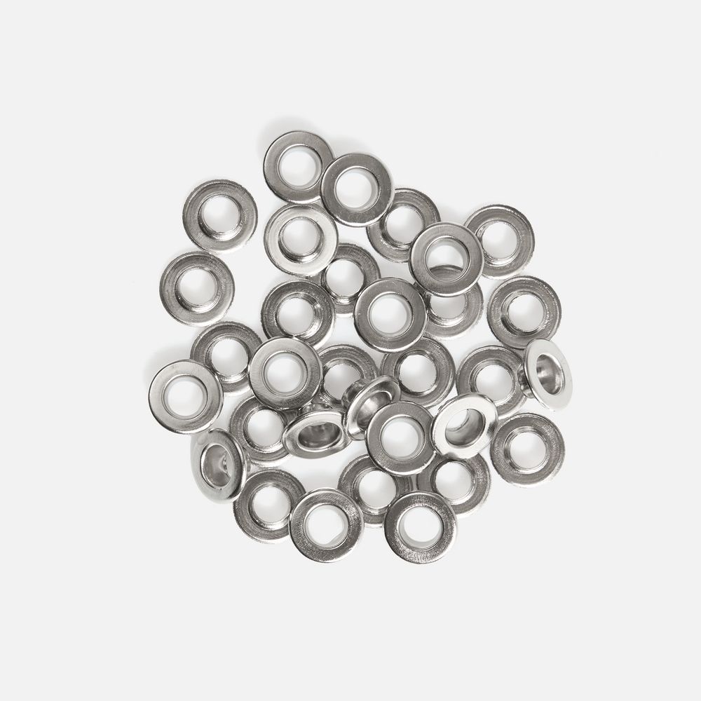 Не подходит для установки на трикотаж. Предназначен для укрепления краев отверстий, используемых для продевания стропы, шнурков, резинки. Легко послужит и элементом дизайна.