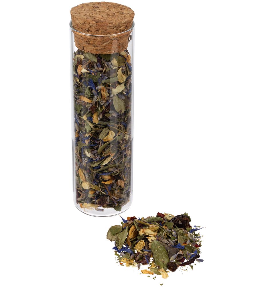 - чай травяной «Горная лаванда» (состав: цветы лаванды, цветы жасмина, шалфей, толокнянка, шиповник, ягоды шелковицы, лепестки василька, каркаде), вес 15 г;