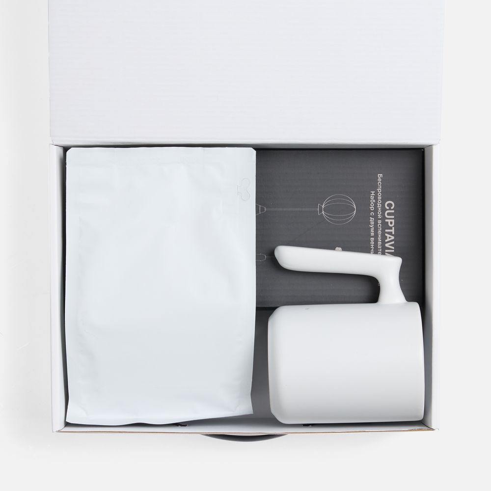Что может быть лучше, чем расслабленно проснуться в выходной день и с легкостью создать атмосферу уютного кафе у себя дома? Прогреть стильную кружку Visari, и, пока варится кофе из свежих зерен «Колумбия», многофункциональным вспенивателем Cuptavia взбить идеальную молочную пенку для капучино. Затем заменить на устройстве насадку и за 30 секунд подготовить основу для пушистого омлета на завтрак — технология «2 в 1» экономит время.