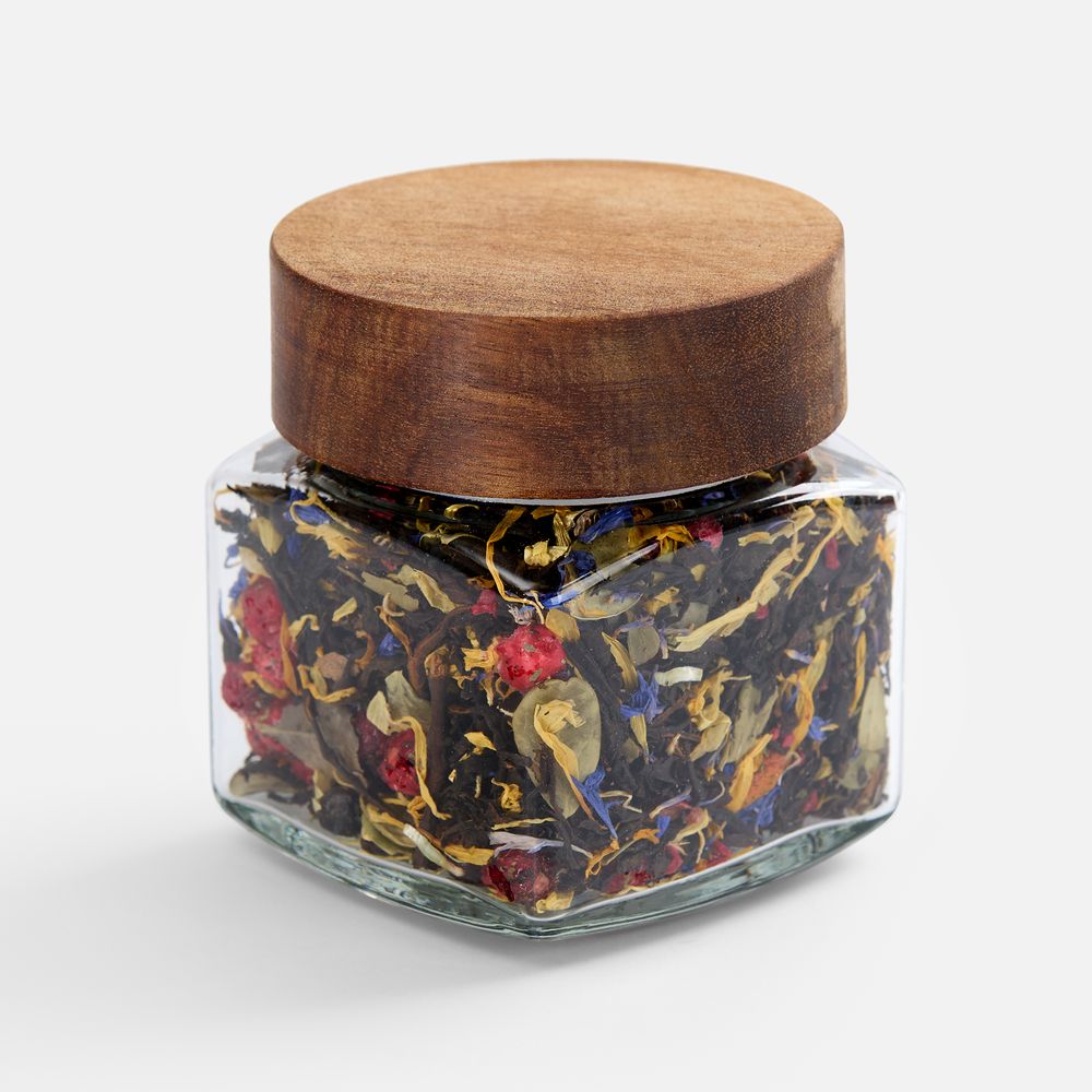 Состав: чай черный индийский листовой, ягоды брусники сублимированные, ягоды облепихи сублимированные, кусочки малины сублимированные, плоды можжевельника, мелисса, лепестки календулы, лепестки василька, листья брусники, боярышник, аромат лесных ягод