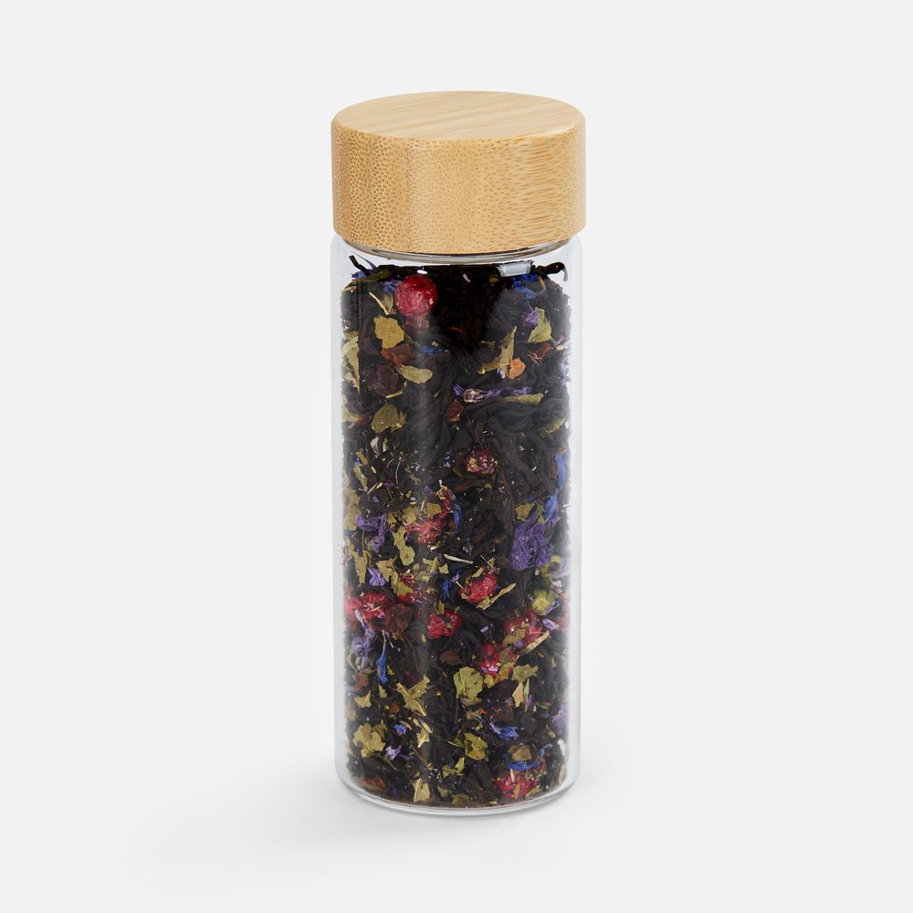 Состав: чай черный индийский листовой OPА Assam , ягоды красной смородины сублимированные, листья смородины, лепестки василька, цветы мальвы, кусочки шиповника, ароматизатор «черная смородина»